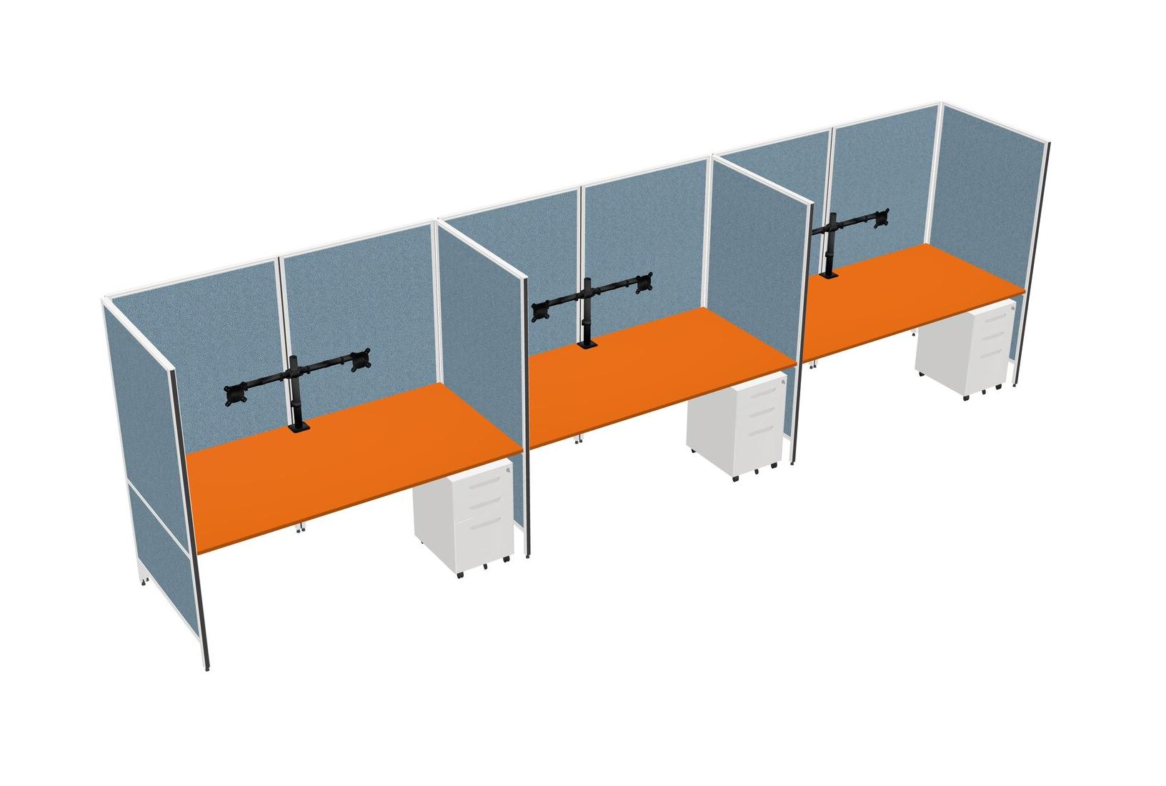 Orange Flexible Panel System For 3 + Metal Mobile Drawers + Monitor Arm (double Arms)