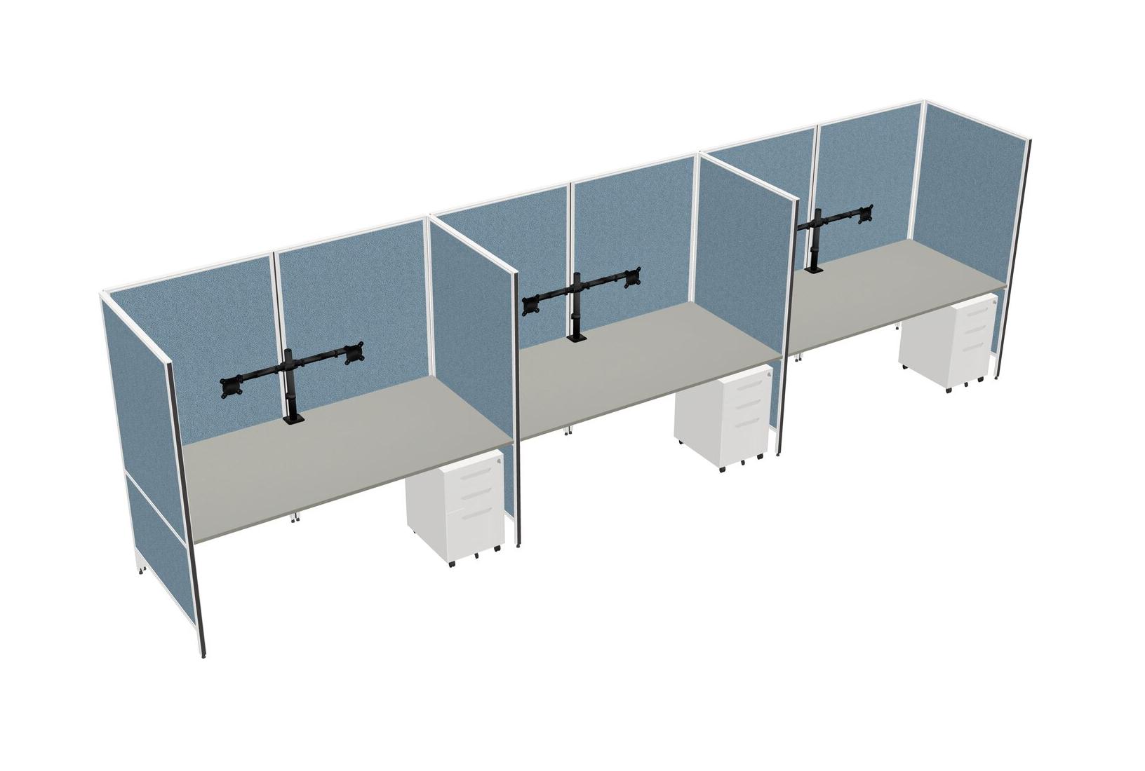 Grey Shadows Flexible Panel System For 3 + Metal Mobile Drawers + Monitor Arm (double Arms)