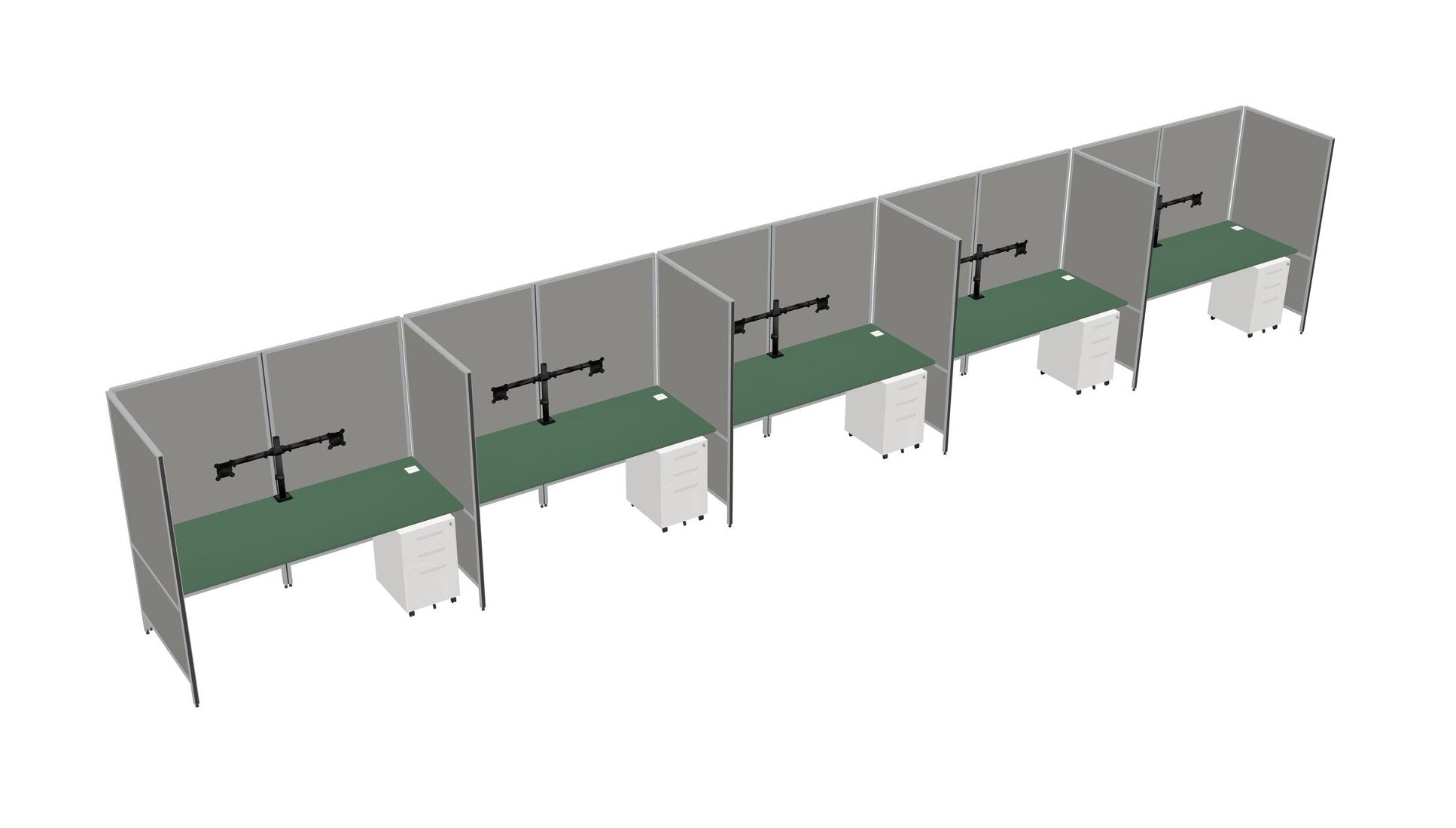 Green Flexible Panel System For 5 + Metal Mobile Drawers + Monitor Arm (double Arms)