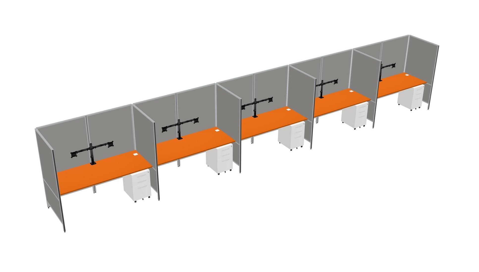 Orange Flexible Panel System For 5 + Metal Mobile Drawers + Monitor Arm (double Arms)