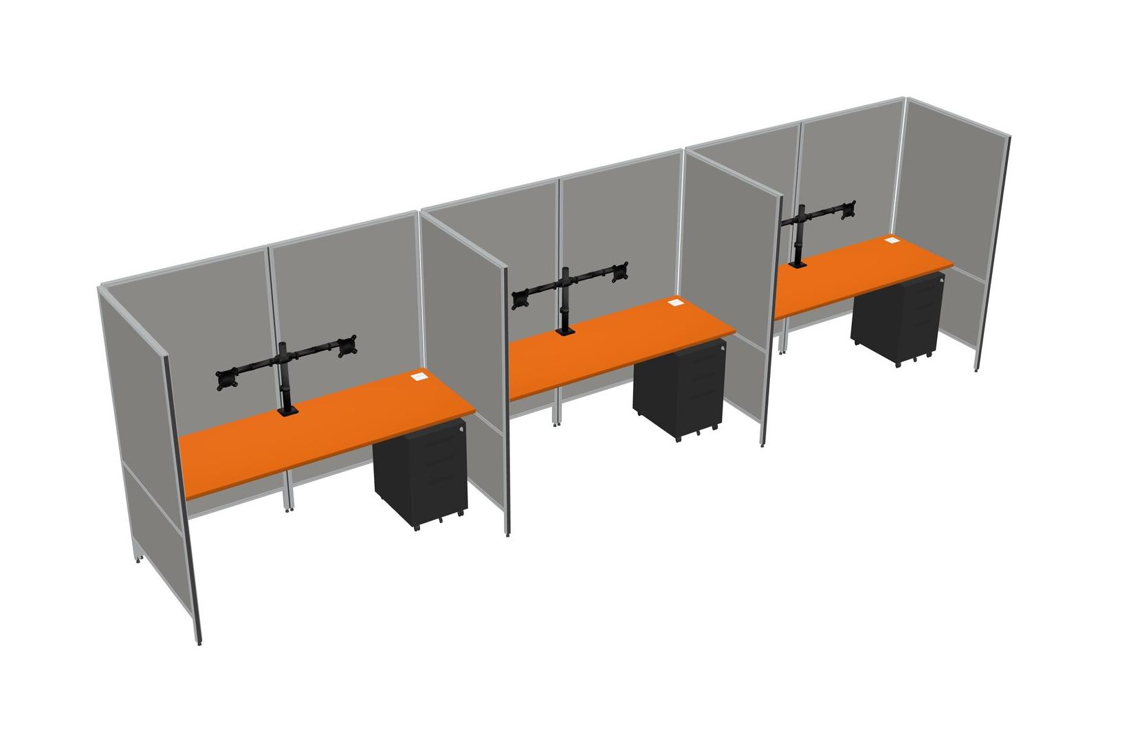 Orange Flexible Panel System For 3 + Metal Mobile Drawers + Monitor Arm (double Arms)
