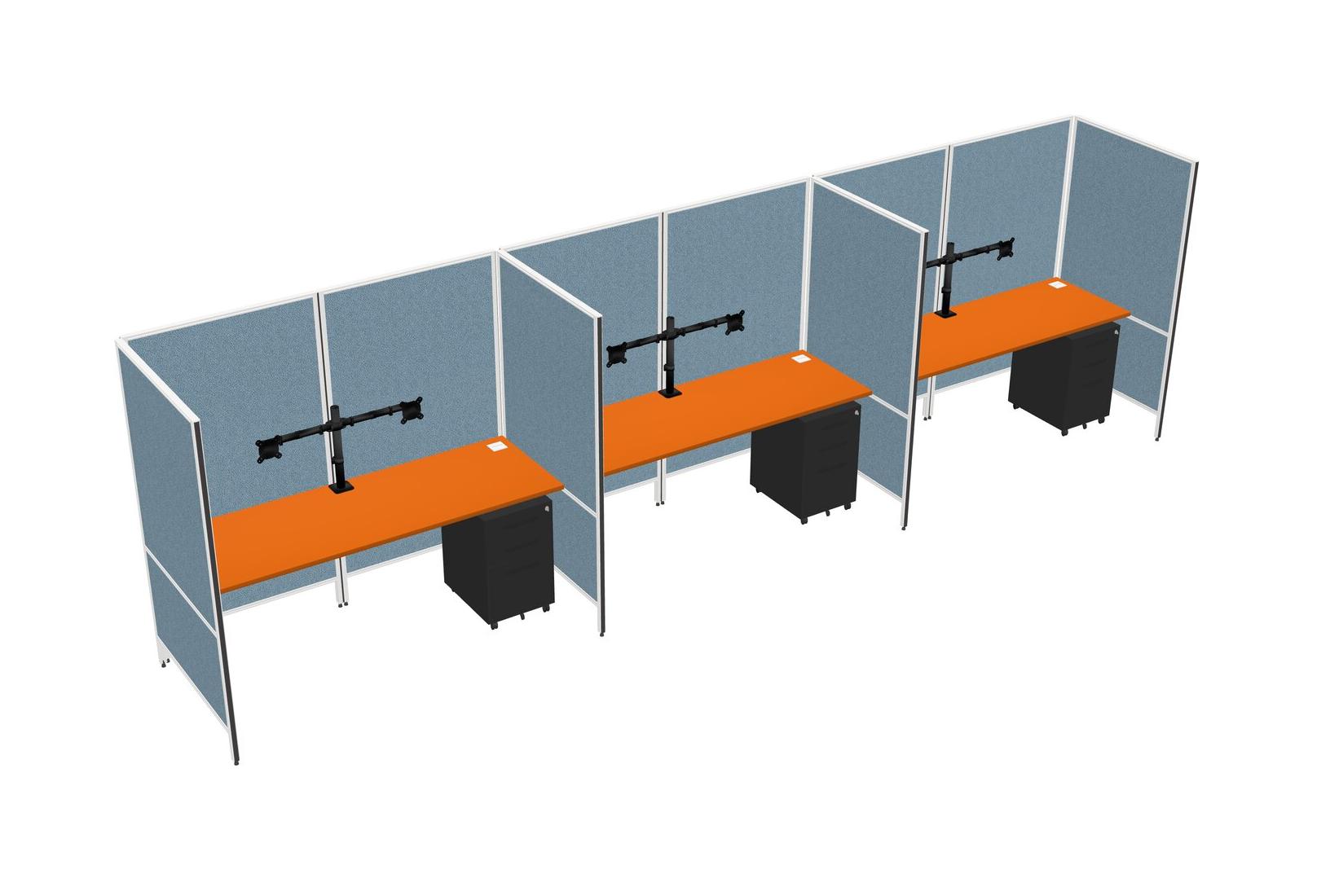 Orange Flexible Panel System For 3 + Metal Mobile Drawers + Monitor Arm (double Arms)