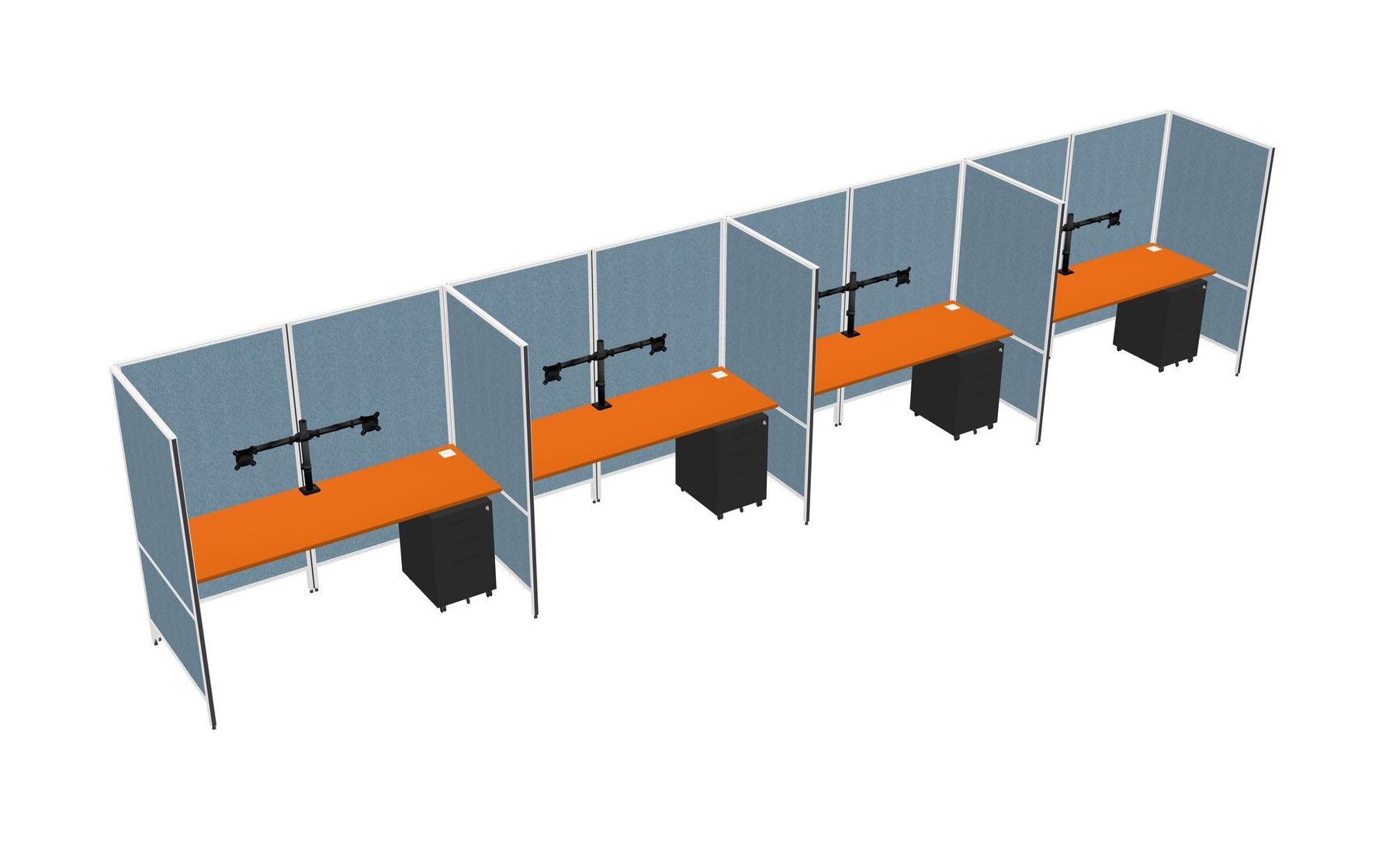 Orange Flexible Panel System For 4 + Metal Mobile Drawers + Monitor Arm (double Arms)