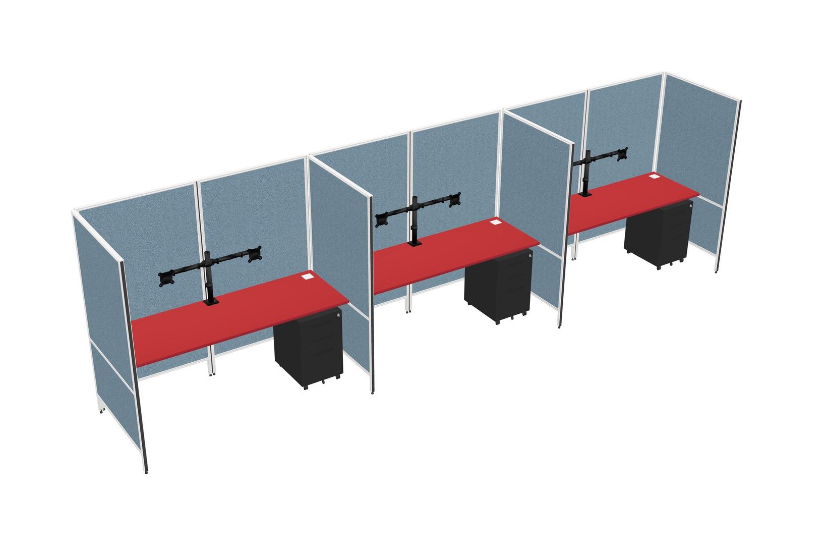 Prism Red Flexible Panel System For 3 + Metal Mobile Drawers + Monitor Arm (double Arms)