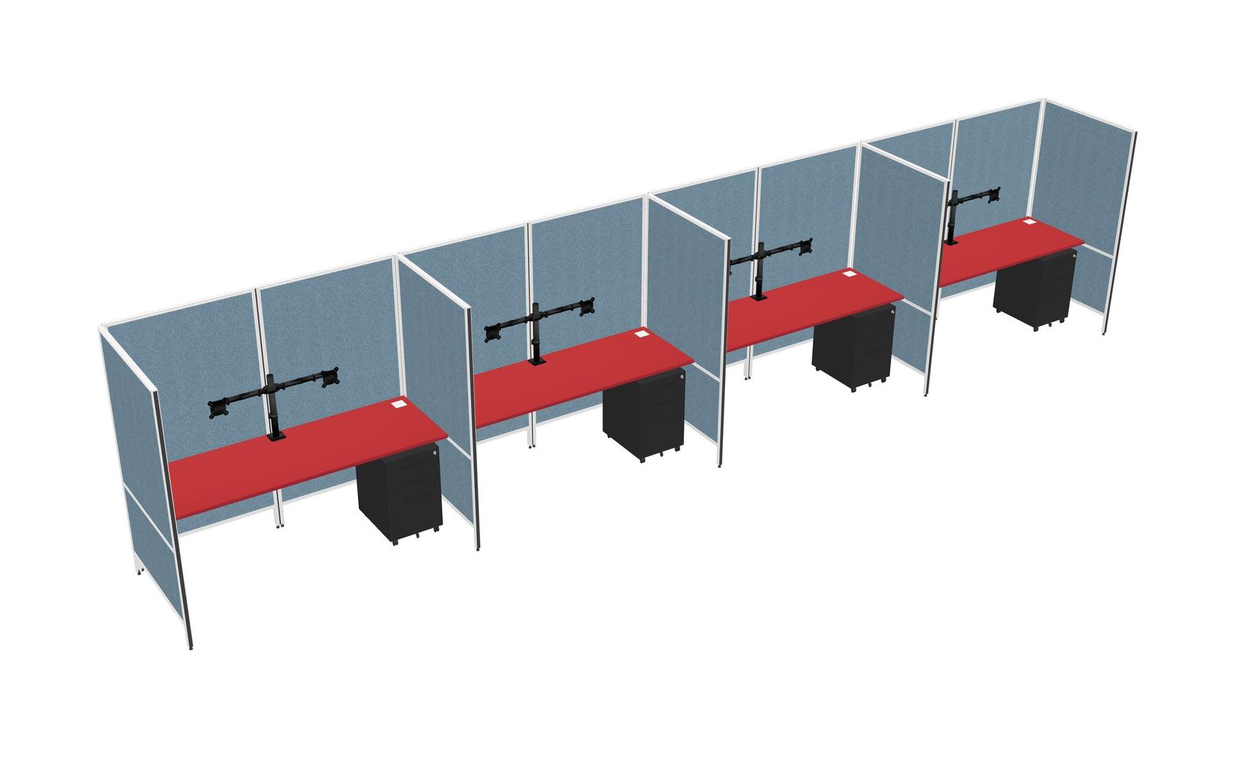 Prism Red Flexible Panel System For 4 + Metal Mobile Drawers + Monitor Arm (double Arms)