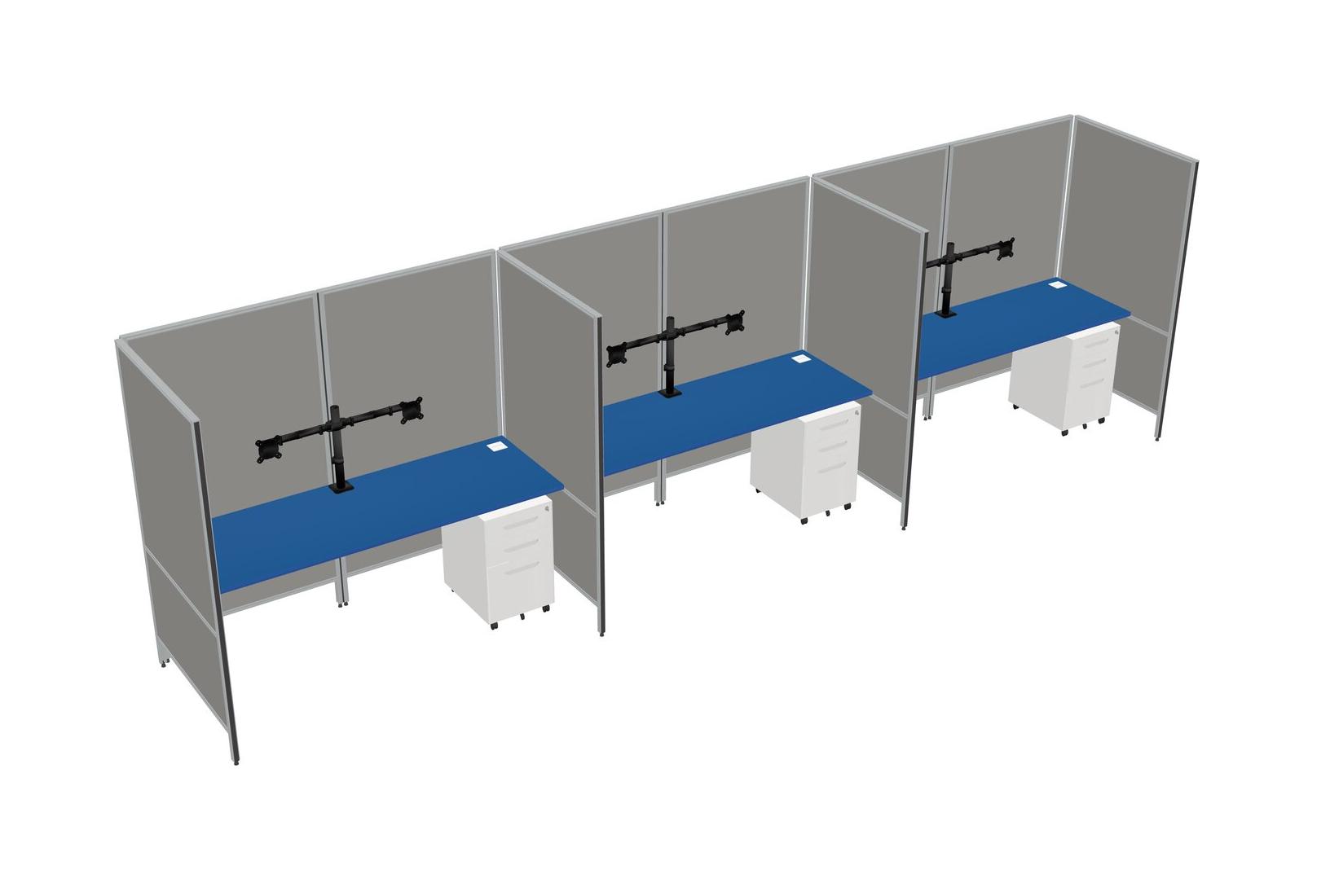 Prism Blue Flexible Panel System For 3 + Metal Mobile Drawers + Monitor Arm (double Arms)