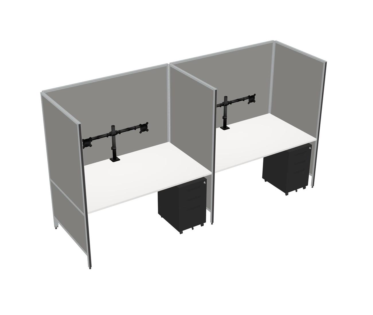 White Flexible Panel System For 2 + Metal Mobile Drawers + Monitor Arm (double Arms)
