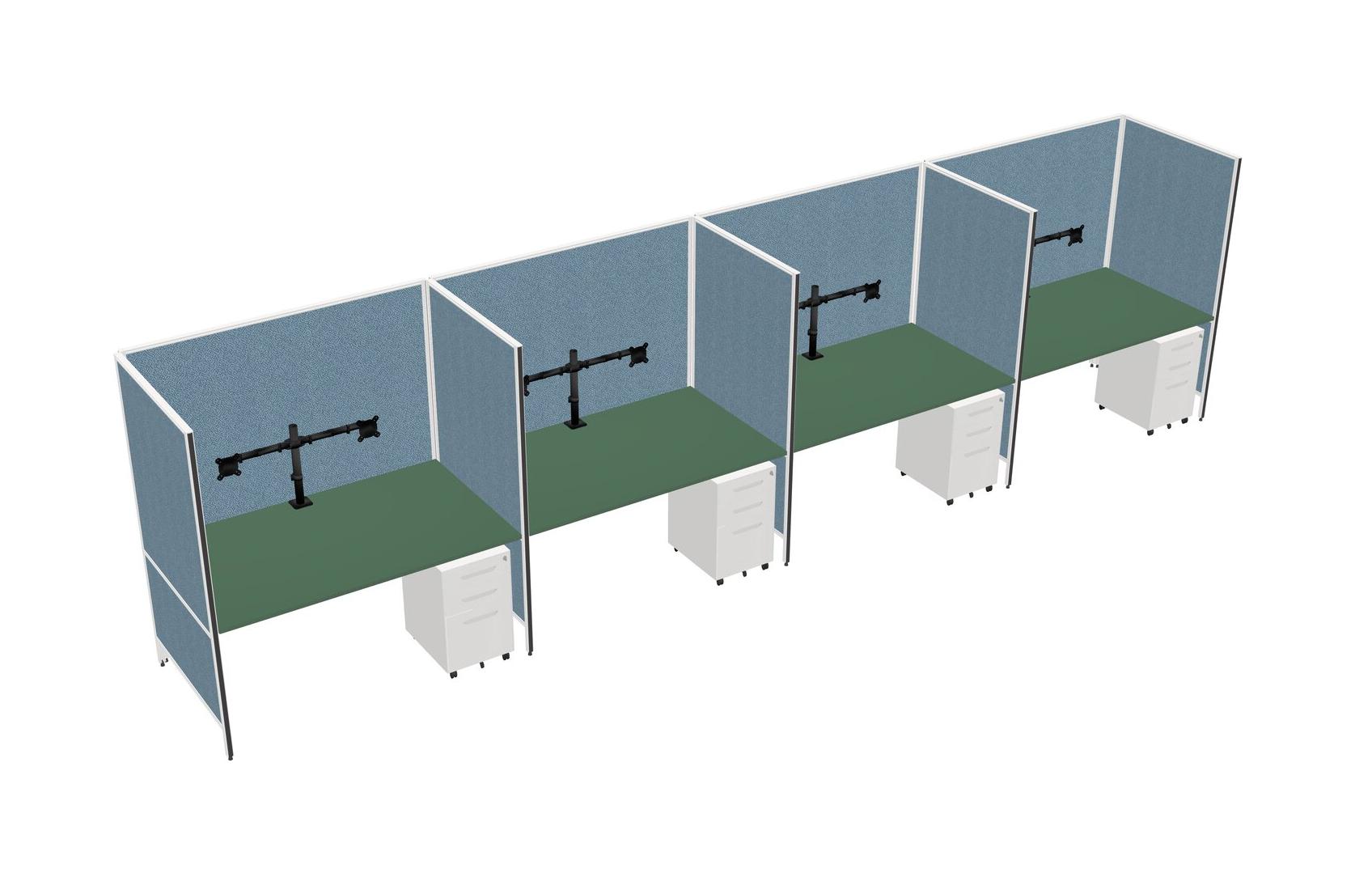 Green Flexible Panel System For 4 + Metal Mobile Drawers + Monitor Arm (double Arms)