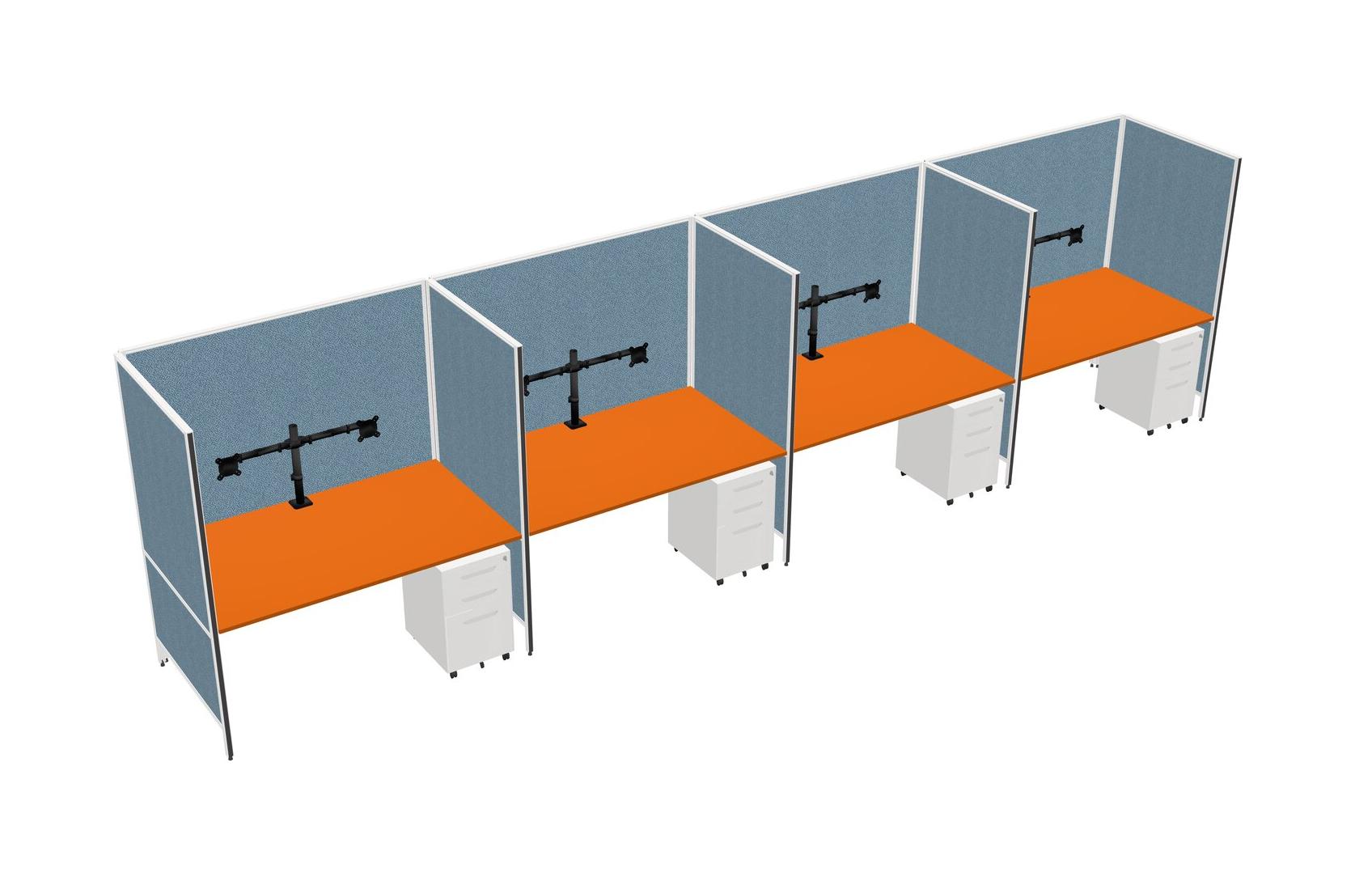 Orange Flexible Panel System For 4 + Metal Mobile Drawers + Monitor Arm (double Arms)