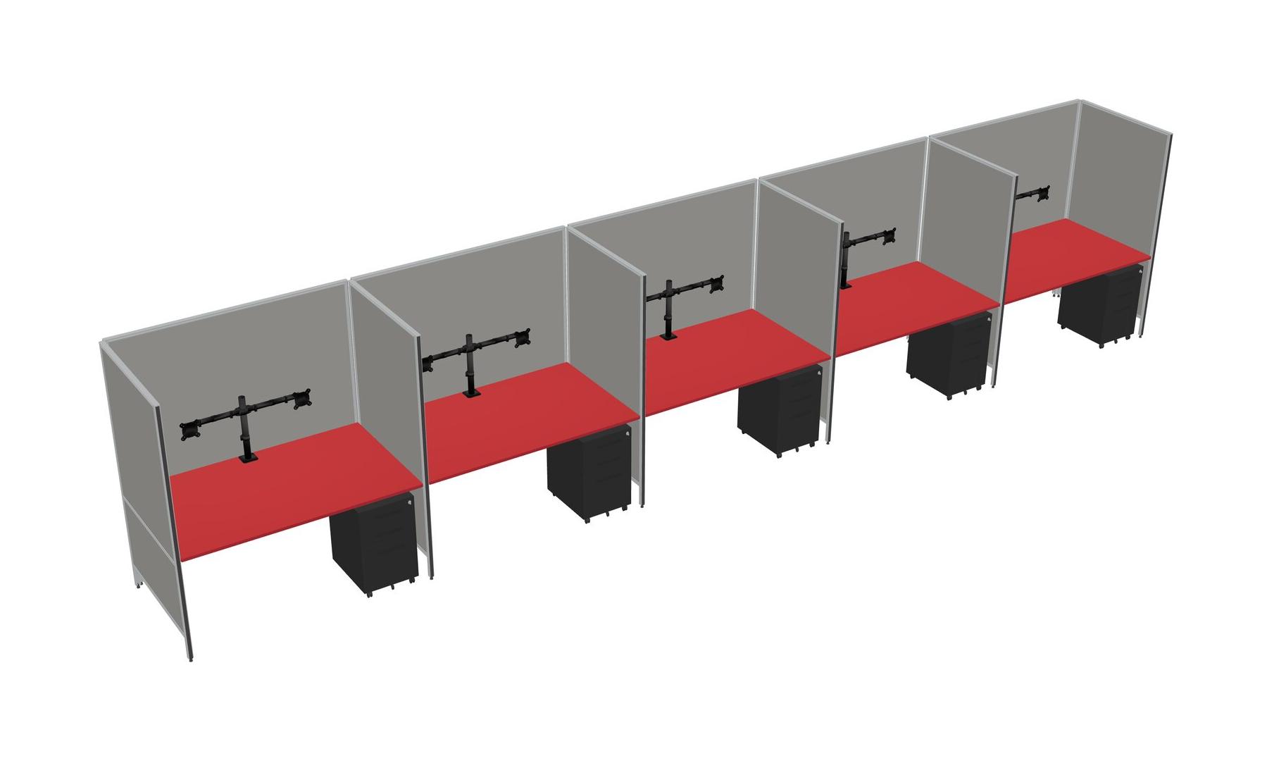 Prism Red Flexible Panel System For 5 + Metal Mobile Drawers + Monitor Arm (double Arms)