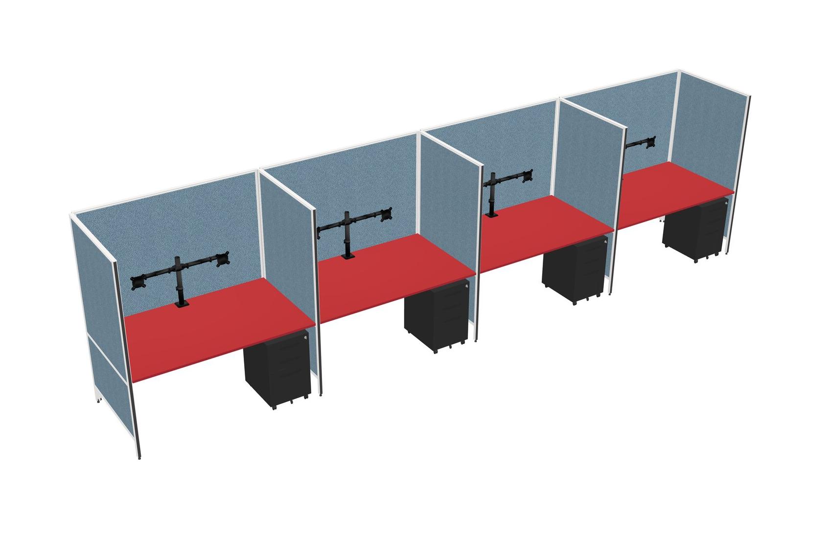 Prism Red Flexible Panel System For 4 + Metal Mobile Drawers + Monitor Arm (double Arms)