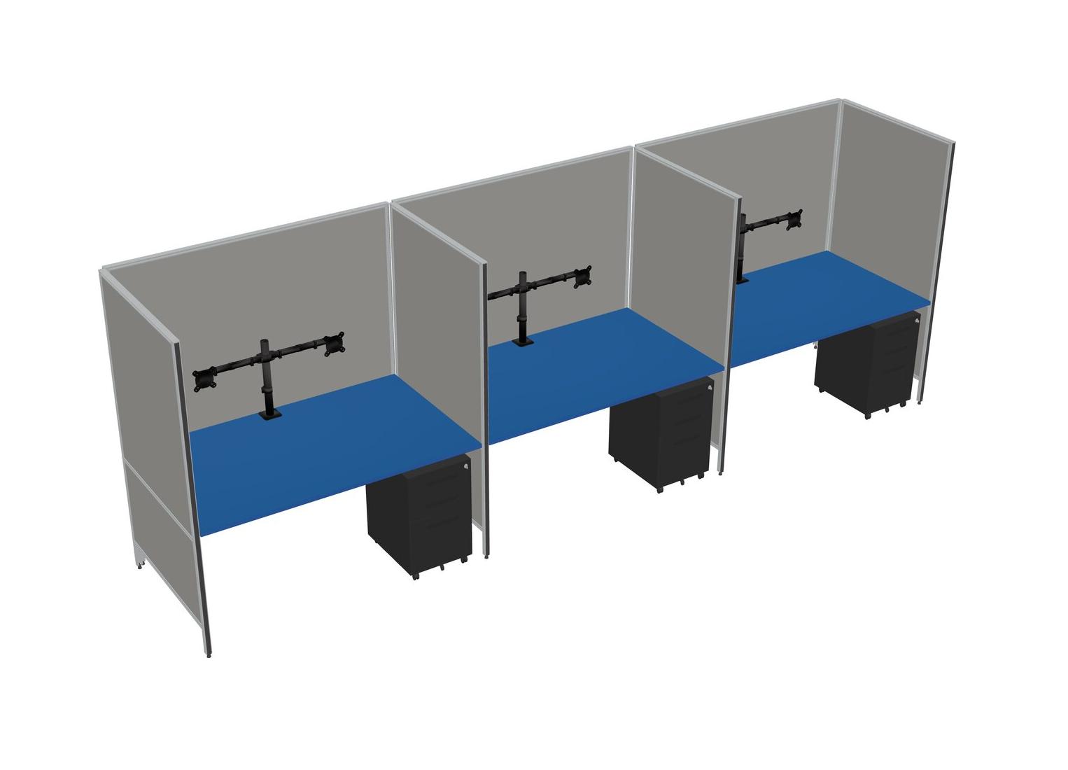 Prism Blue Flexible Panel System For 3 + Metal Mobile Drawers + Monitor Arm (double Arms)