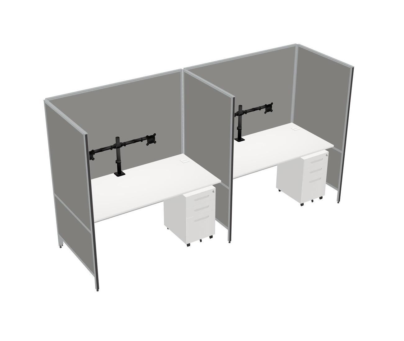 White Flexible Panel System For 2 + Metal Mobile Drawers + Monitor Arm (double Arms)