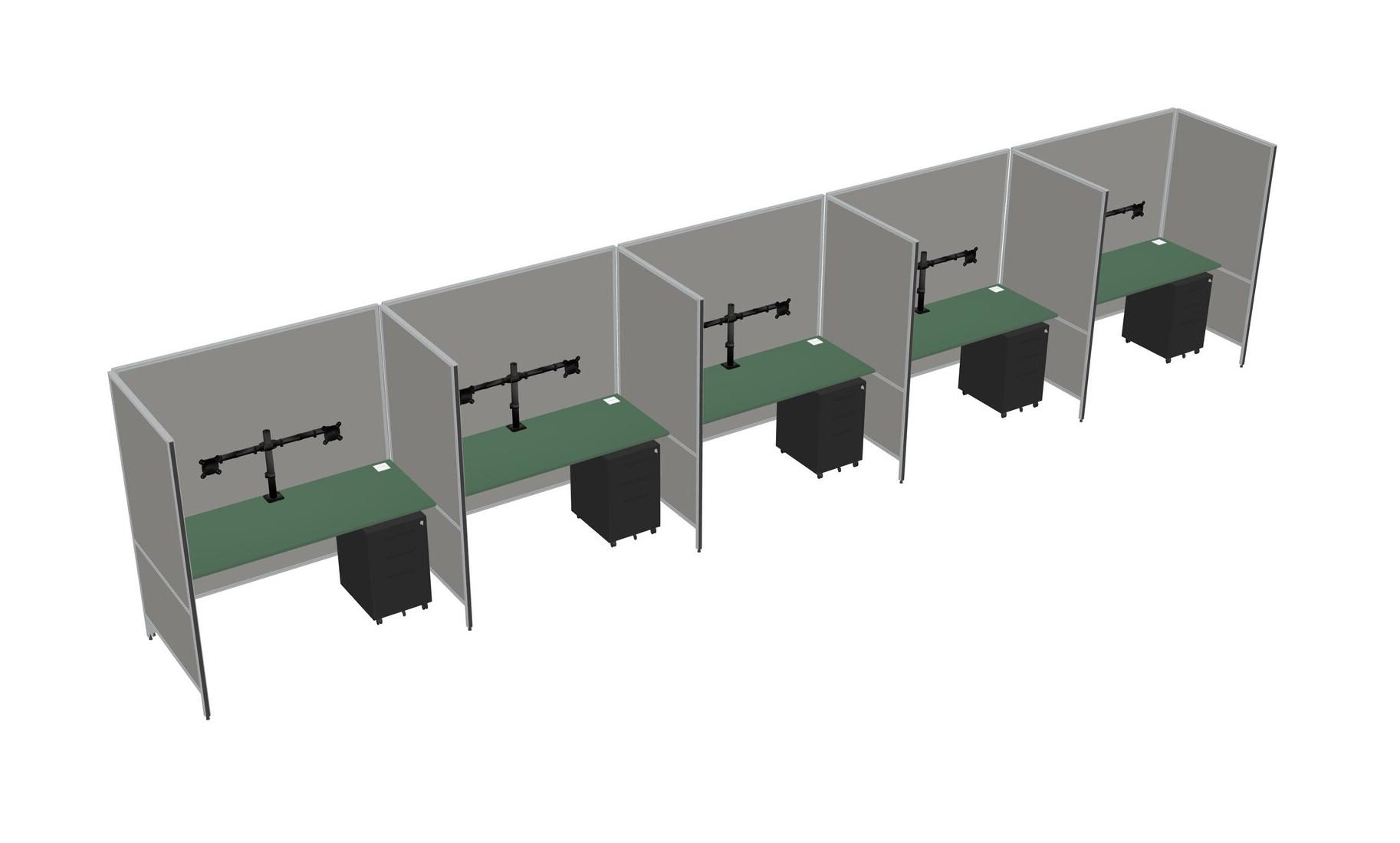 Green Flexible Panel System For 5 + Metal Mobile Drawers + Monitor Arm (double Arms)