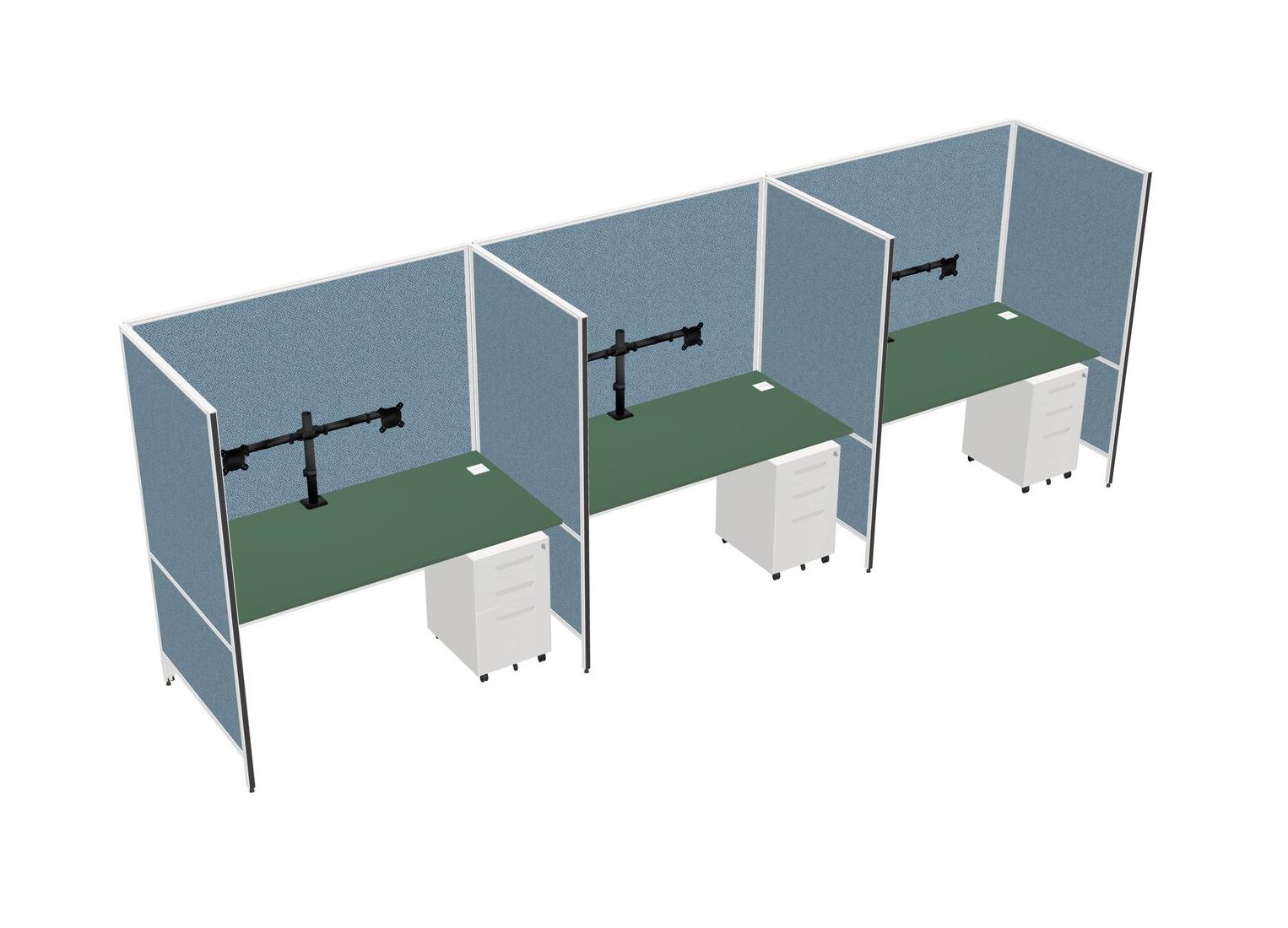 Green Flexible Panel System For 3 + Metal Mobile Drawers + Monitor Arm (double Arms)