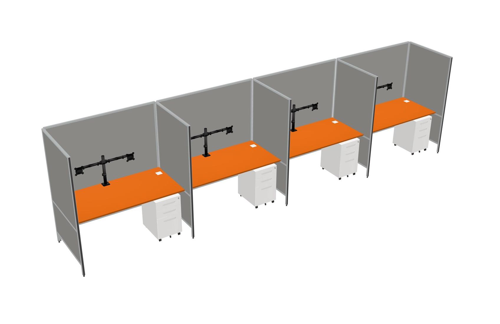 Orange Flexible Panel System For 4 + Metal Mobile Drawers + Monitor Arm (double Arms)