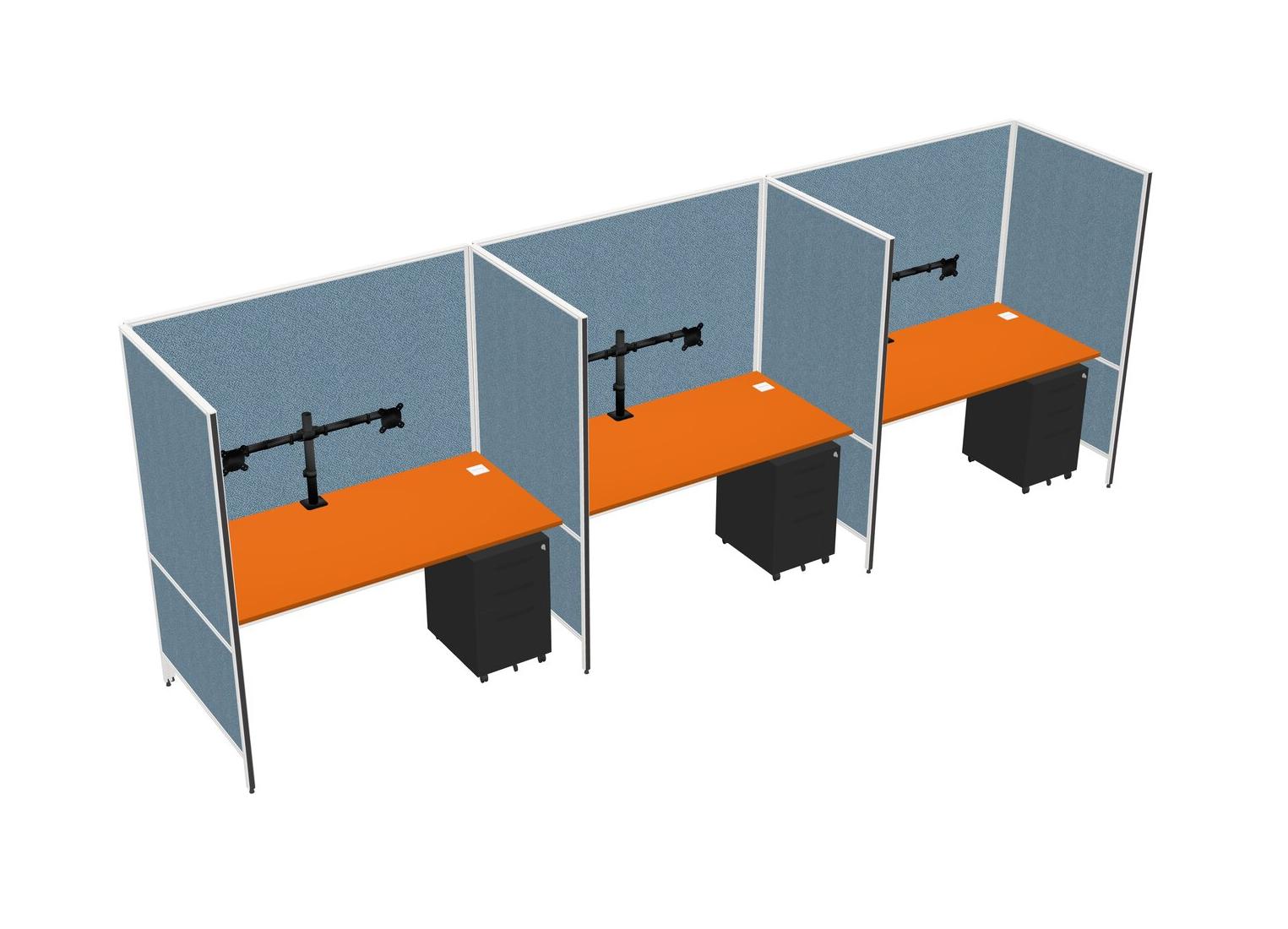 Orange Flexible Panel System For 3 + Metal Mobile Drawers + Monitor Arm (double Arms)