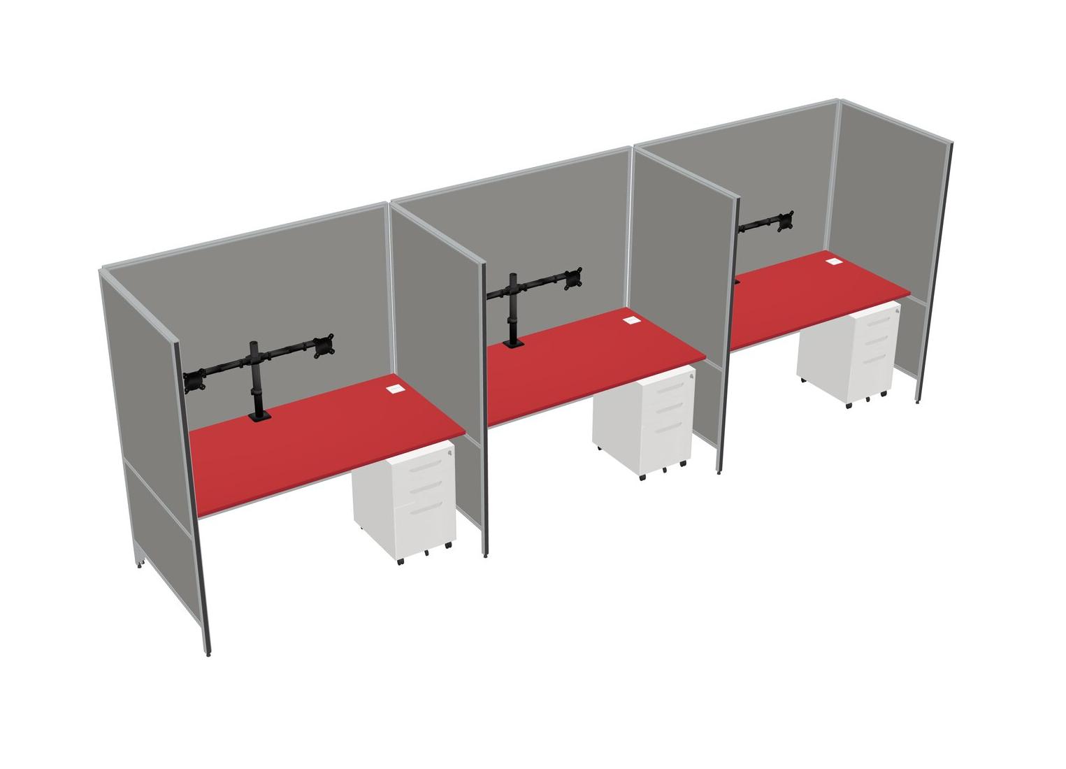 Prism Red Flexible Panel System For 3 + Metal Mobile Drawers + Monitor Arm (double Arms)