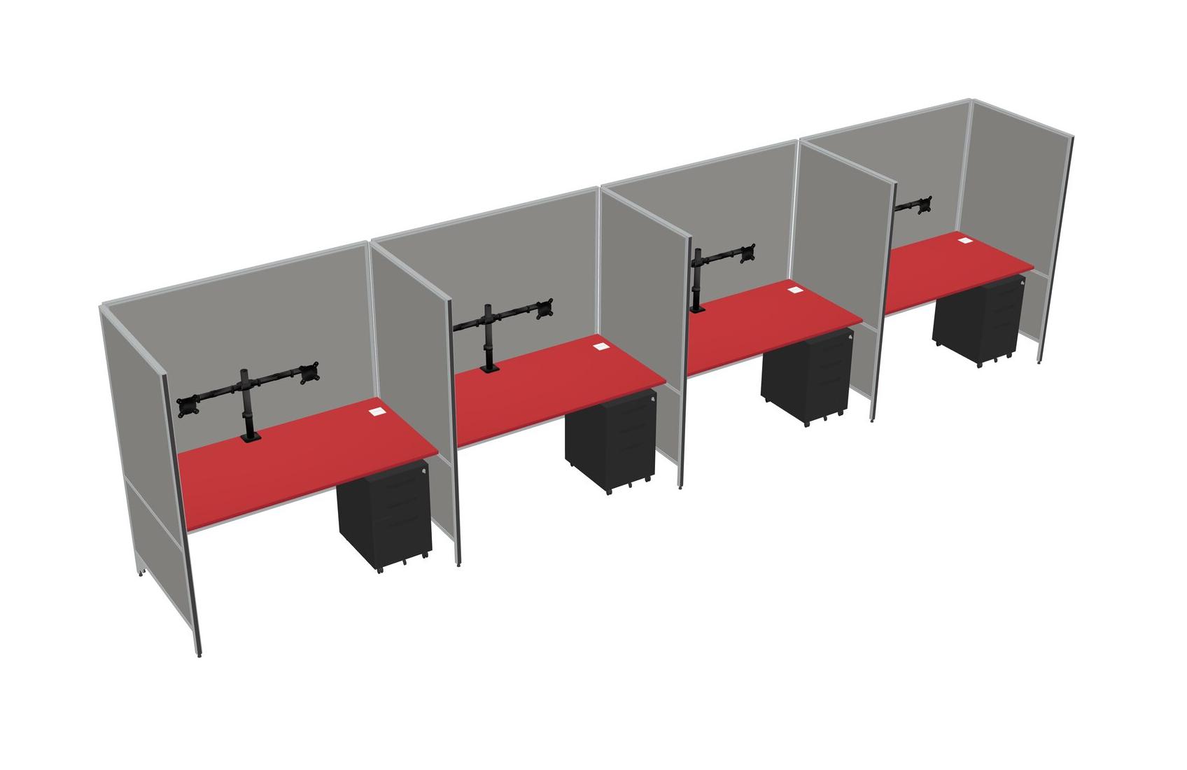 Prism Red Flexible Panel System For 4 + Metal Mobile Drawers + Monitor Arm (double Arms)