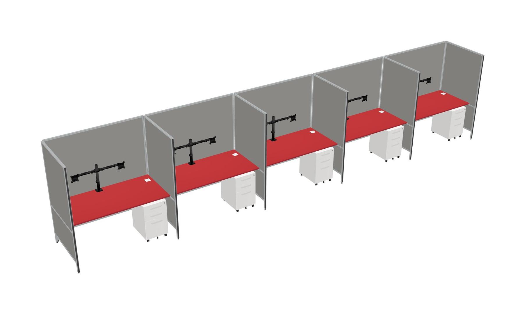 Prism Red Flexible Panel System For 5 + Metal Mobile Drawers + Monitor Arm (double Arms)
