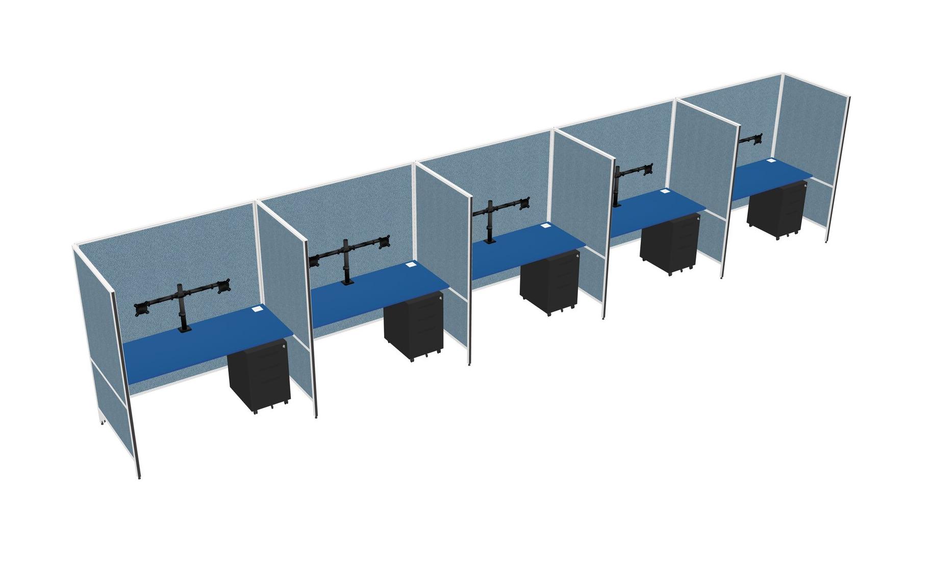 Prism Blue Flexible Panel System For 5 + Metal Mobile Drawers + Monitor Arm (double Arms)