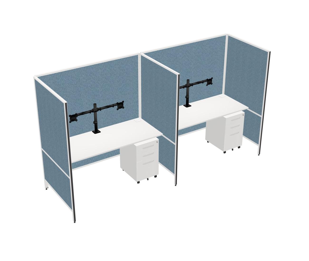 White Flexible Panel System For 2 + Metal Mobile Drawers + Monitor Arm (double Arms)