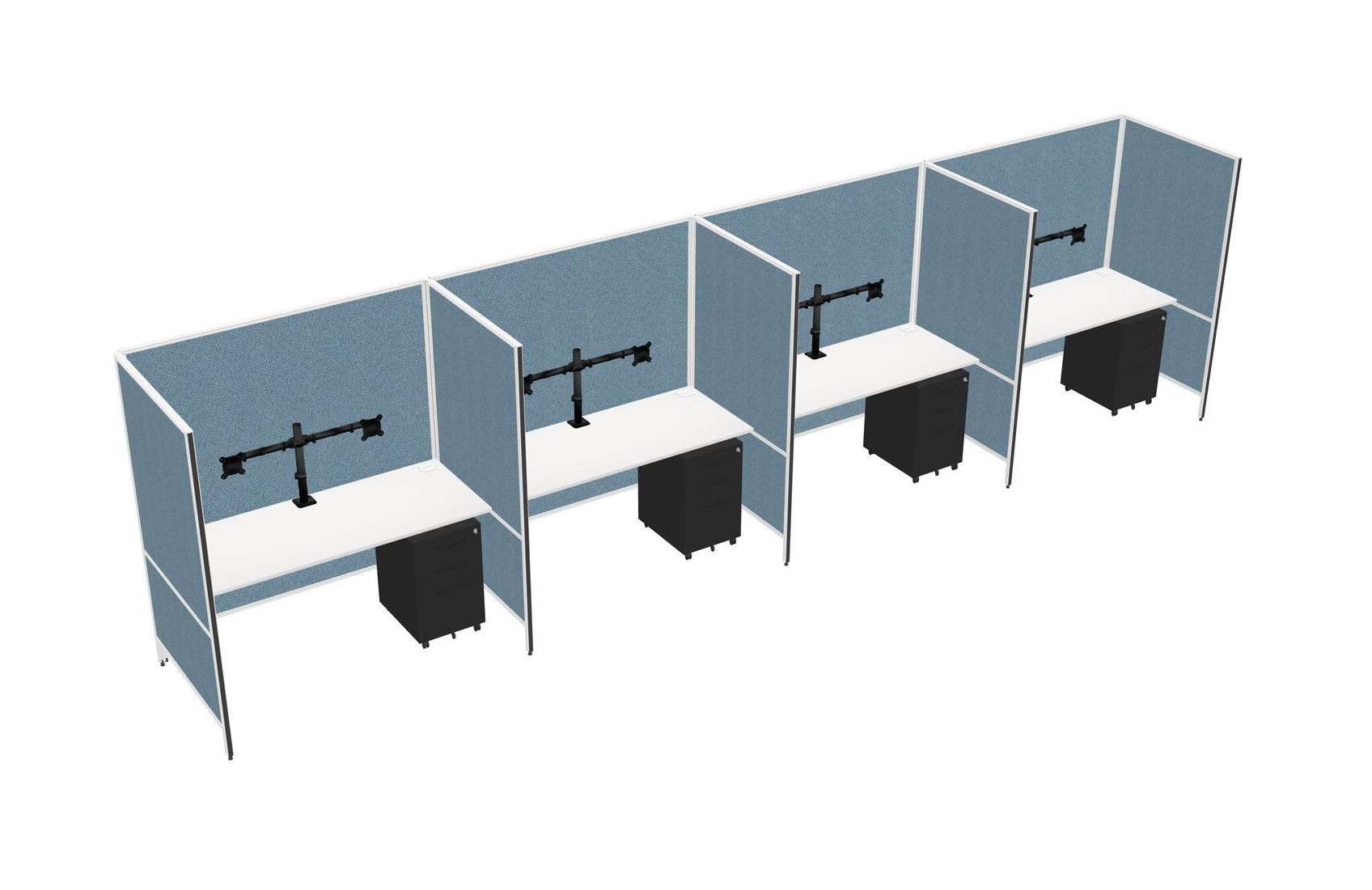 White Flexible Panel System For 4 + Metal Mobile Drawers + Monitor Arm (double Arms)