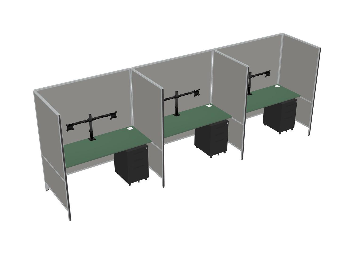 Green Flexible Panel System For 3 + Metal Mobile Drawers + Monitor Arm (double Arms)