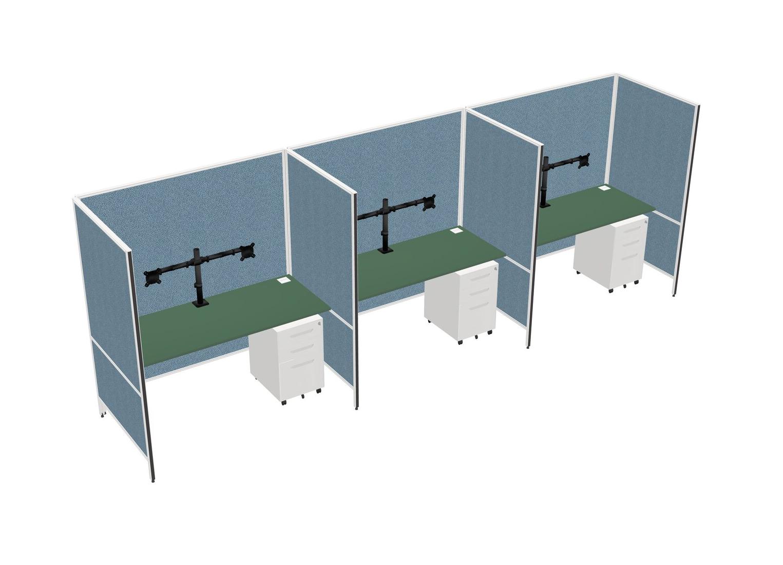 Green Flexible Panel System For 3 + Metal Mobile Drawers + Monitor Arm (double Arms)