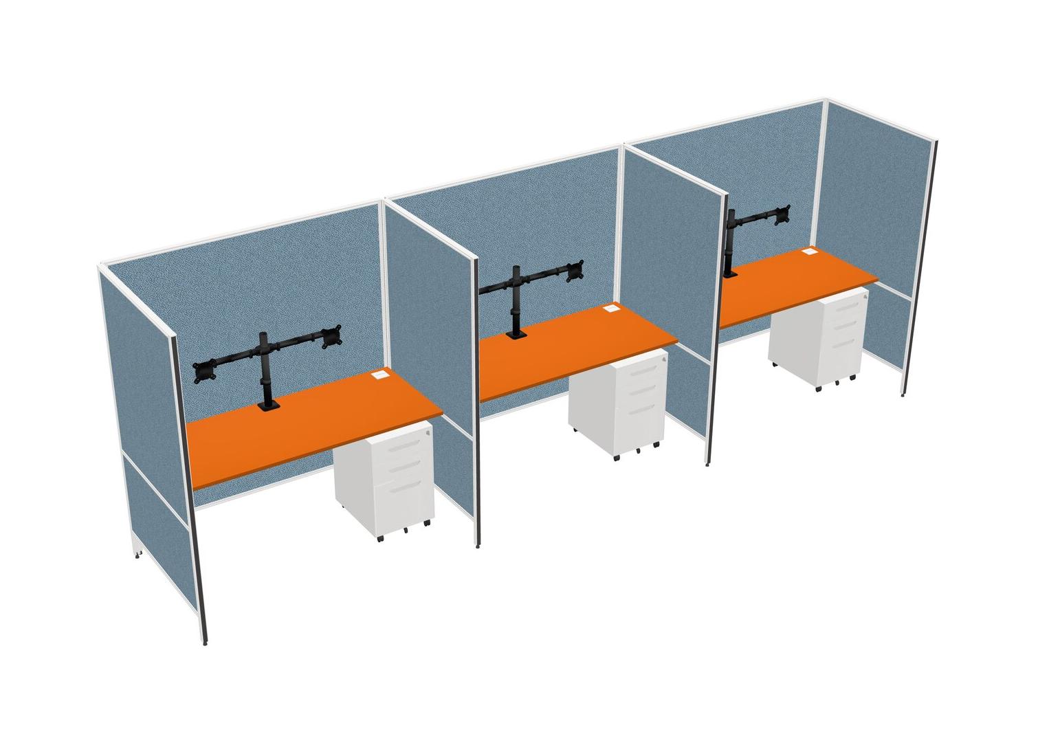 Orange Flexible Panel System For 3 + Metal Mobile Drawers + Monitor Arm (double Arms)