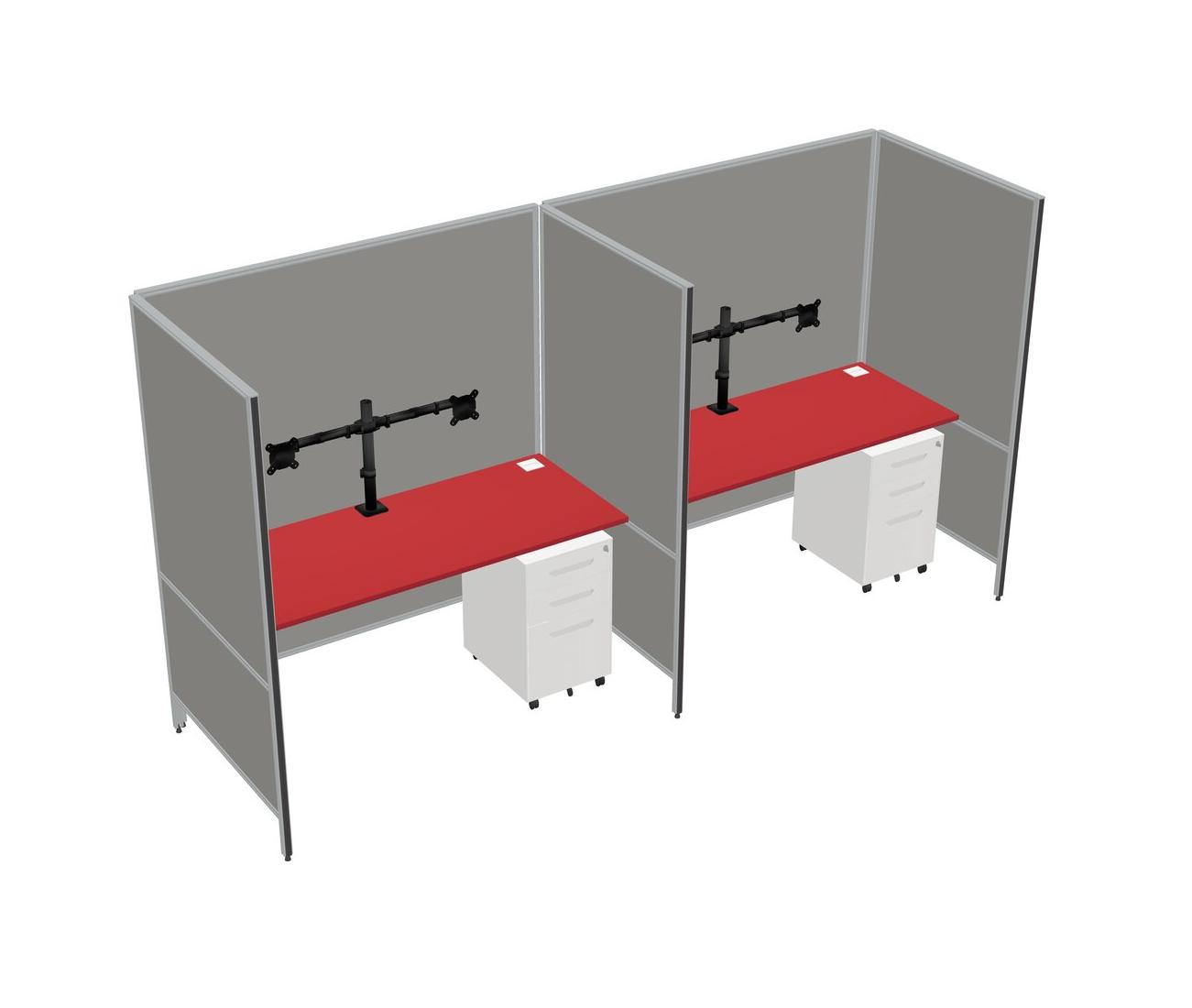 Prism Red Flexible Panel System For 2 + Metal Mobile Drawers + Monitor Arm (double Arms)