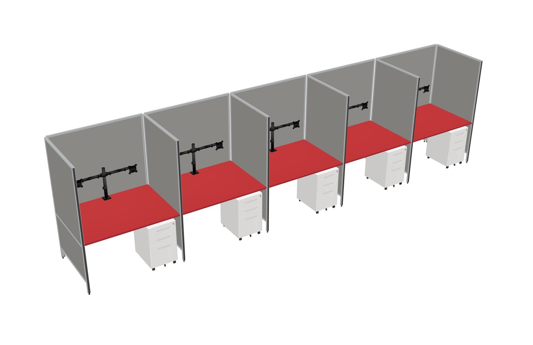 Prism Red Flexible Panel System For 5 + Metal Mobile Drawers + Monitor Arm (double Arms)