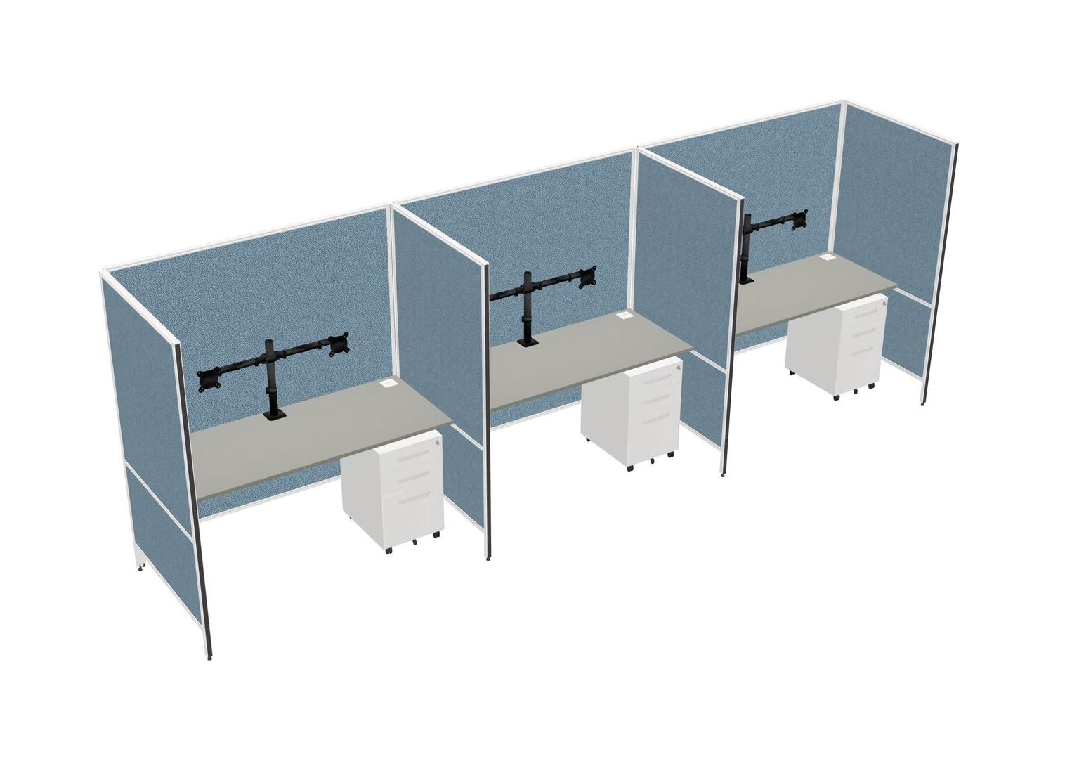 Grey Shadows Flexible Panel System For 3 + Metal Mobile Drawers + Monitor Arm (double Arms)