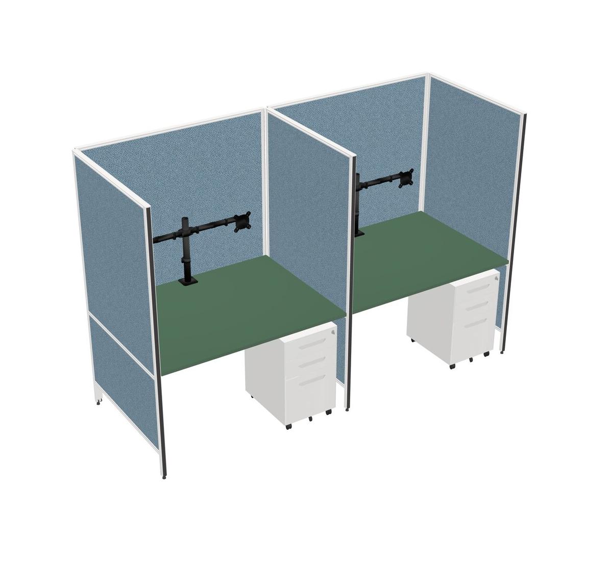 Green Flexible Panel System For 2 + Metal Mobile Drawers + Monitor Arm (double Arms)