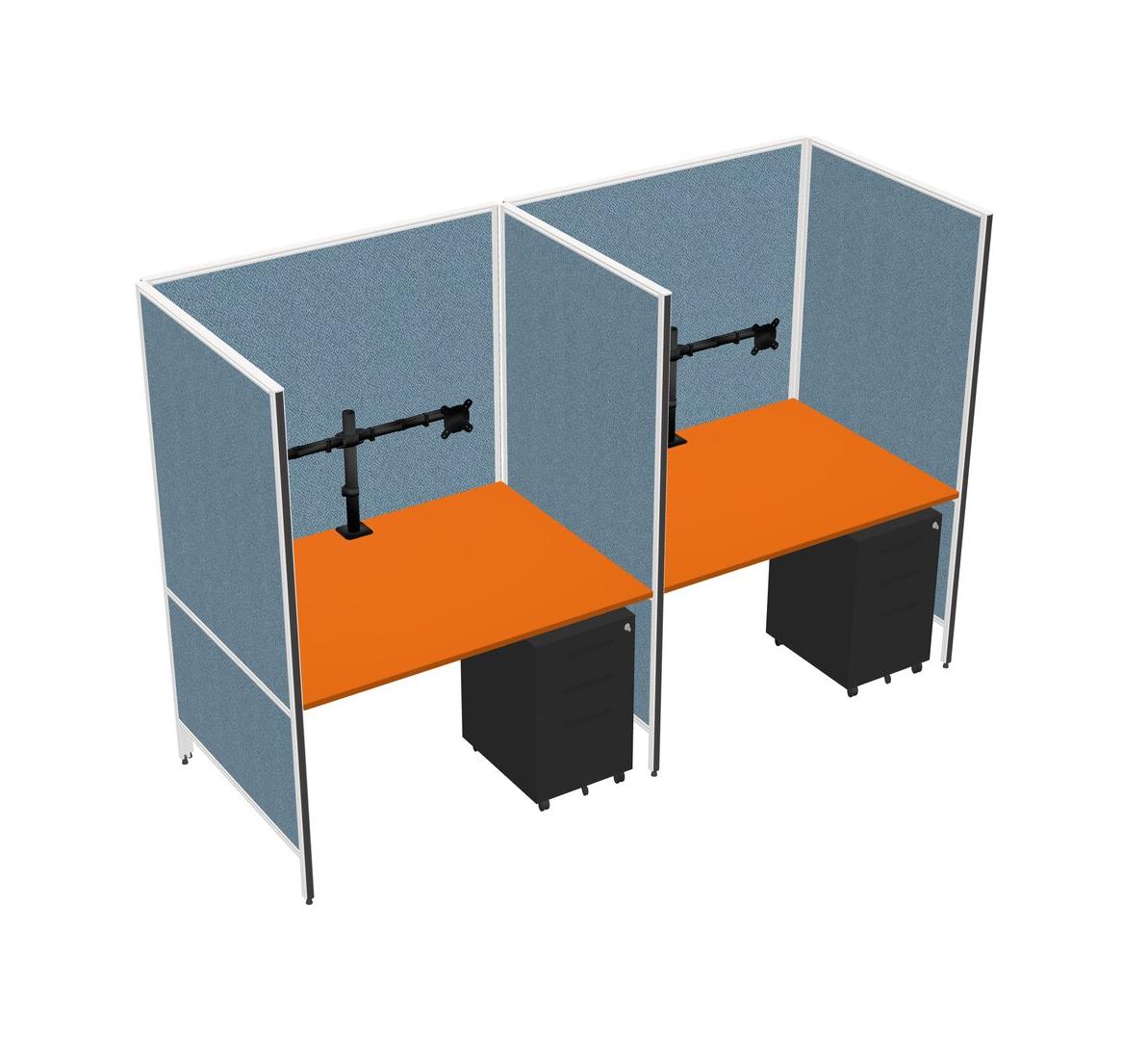 Orange Flexible Panel System For 2 + Metal Mobile Drawers + Monitor Arm (double Arms)