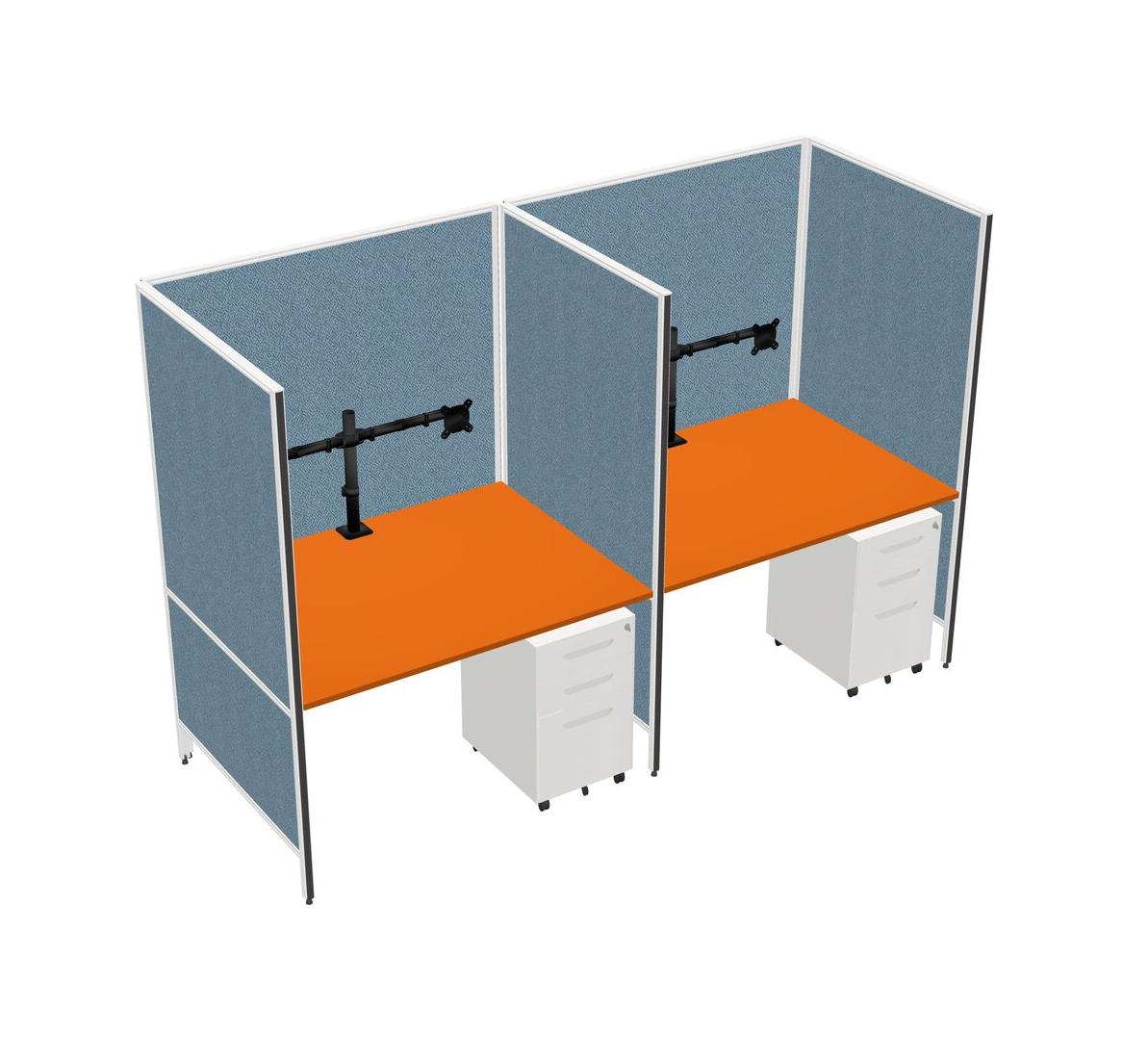 Orange Flexible Panel System For 2 + Metal Mobile Drawers + Monitor Arm (double Arms)