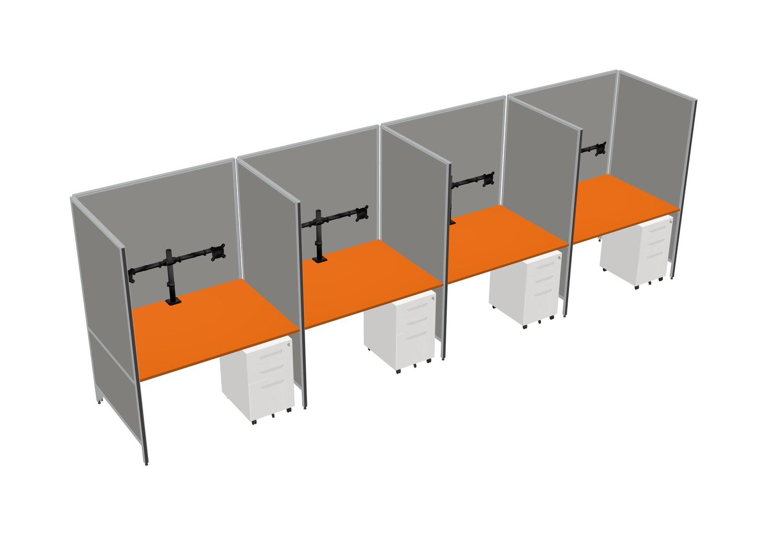 Orange Flexible Panel System For 4 + Metal Mobile Drawers + Monitor Arm (double Arms)
