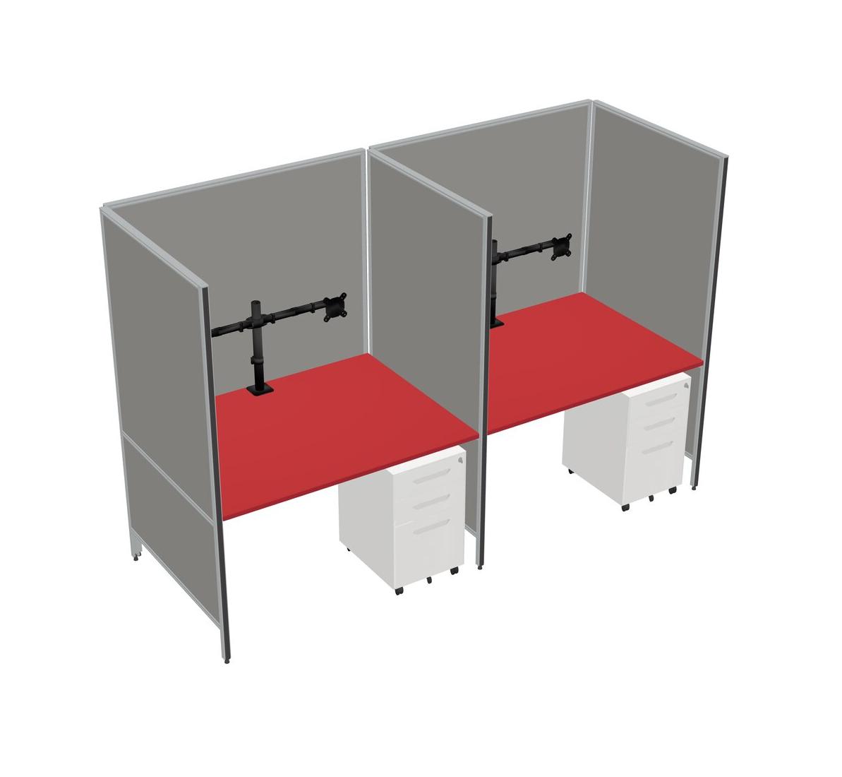 Prism Red Flexible Panel System For 2 + Metal Mobile Drawers + Monitor Arm (double Arms)