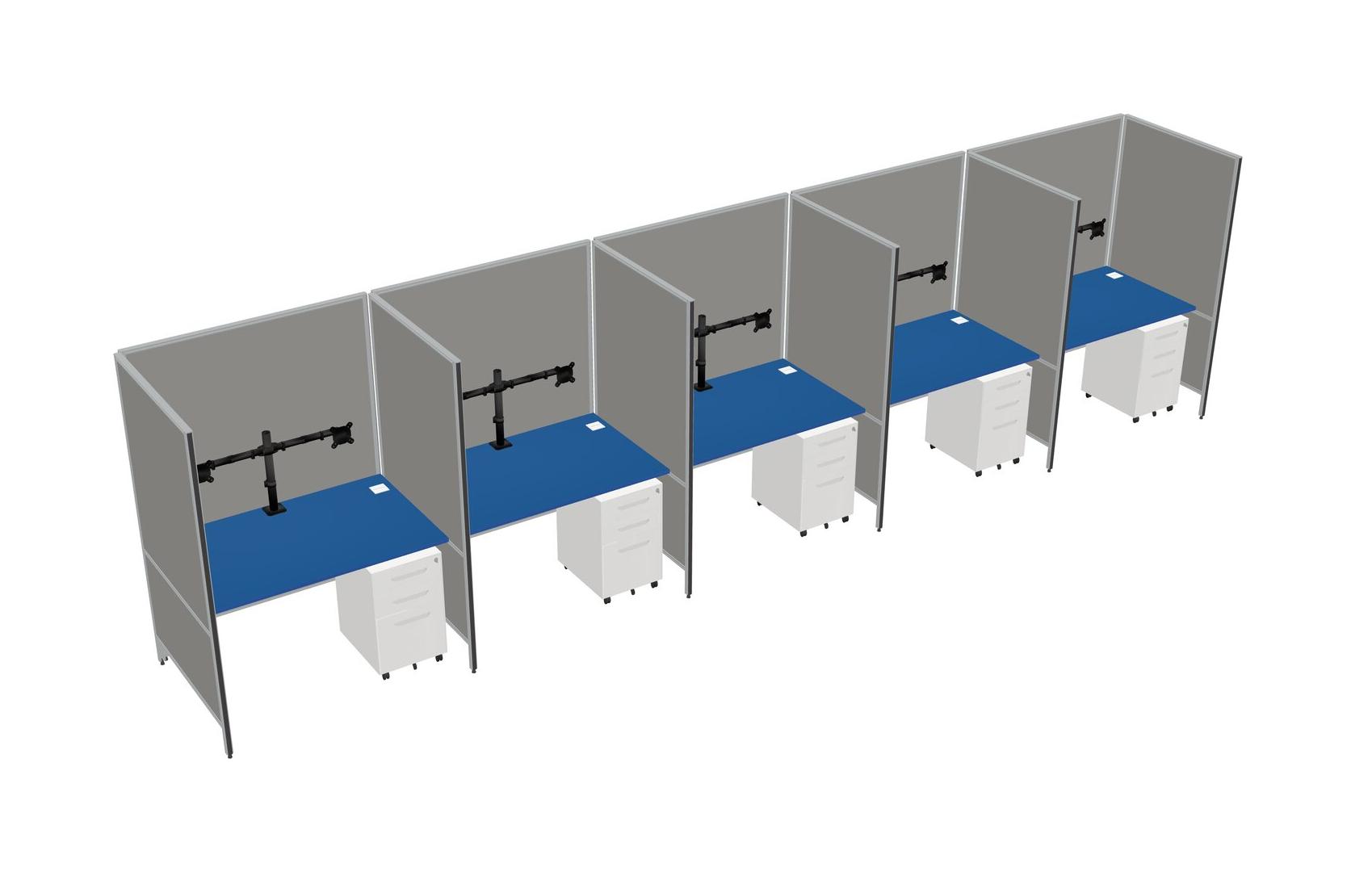 Prism Blue Flexible Panel System For 5 + Metal Mobile Drawers + Monitor Arm (double Arms)