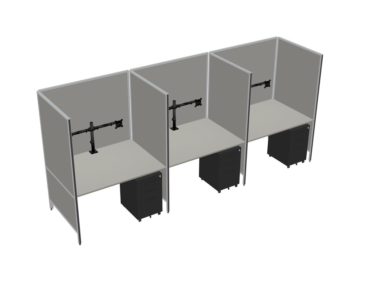 Grey Shadows Flexible Panel System For 3 + Metal Mobile Drawers + Monitor Arm (double Arms)