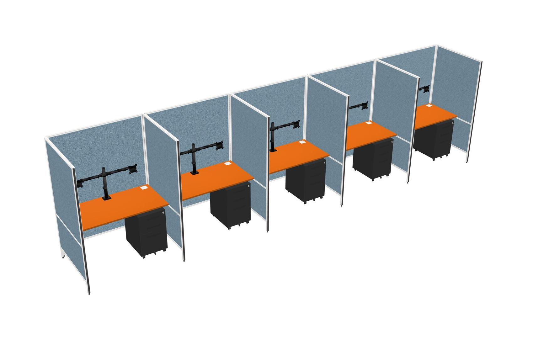 Orange Flexible Panel System For 5 + Metal Mobile Drawers + Monitor Arm (double Arms)