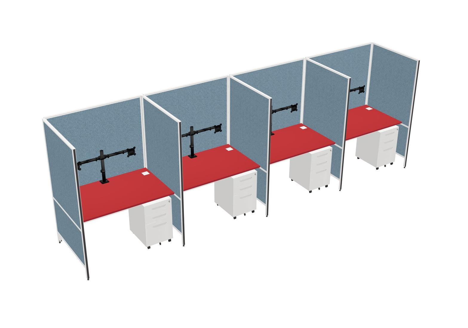 Prism Red Flexible Panel System For 4 + Metal Mobile Drawers + Monitor Arm (double Arms)
