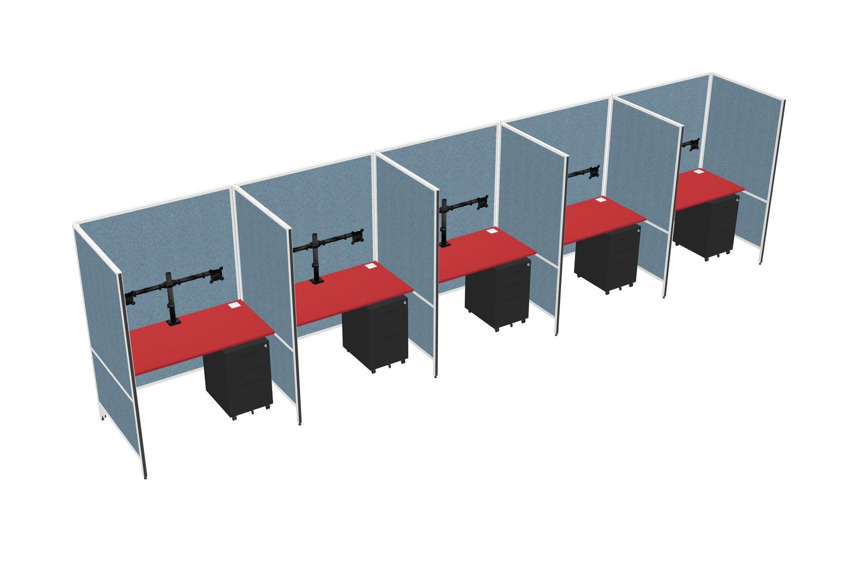 Prism Red Flexible Panel System For 5 + Metal Mobile Drawers + Monitor Arm (double Arms)