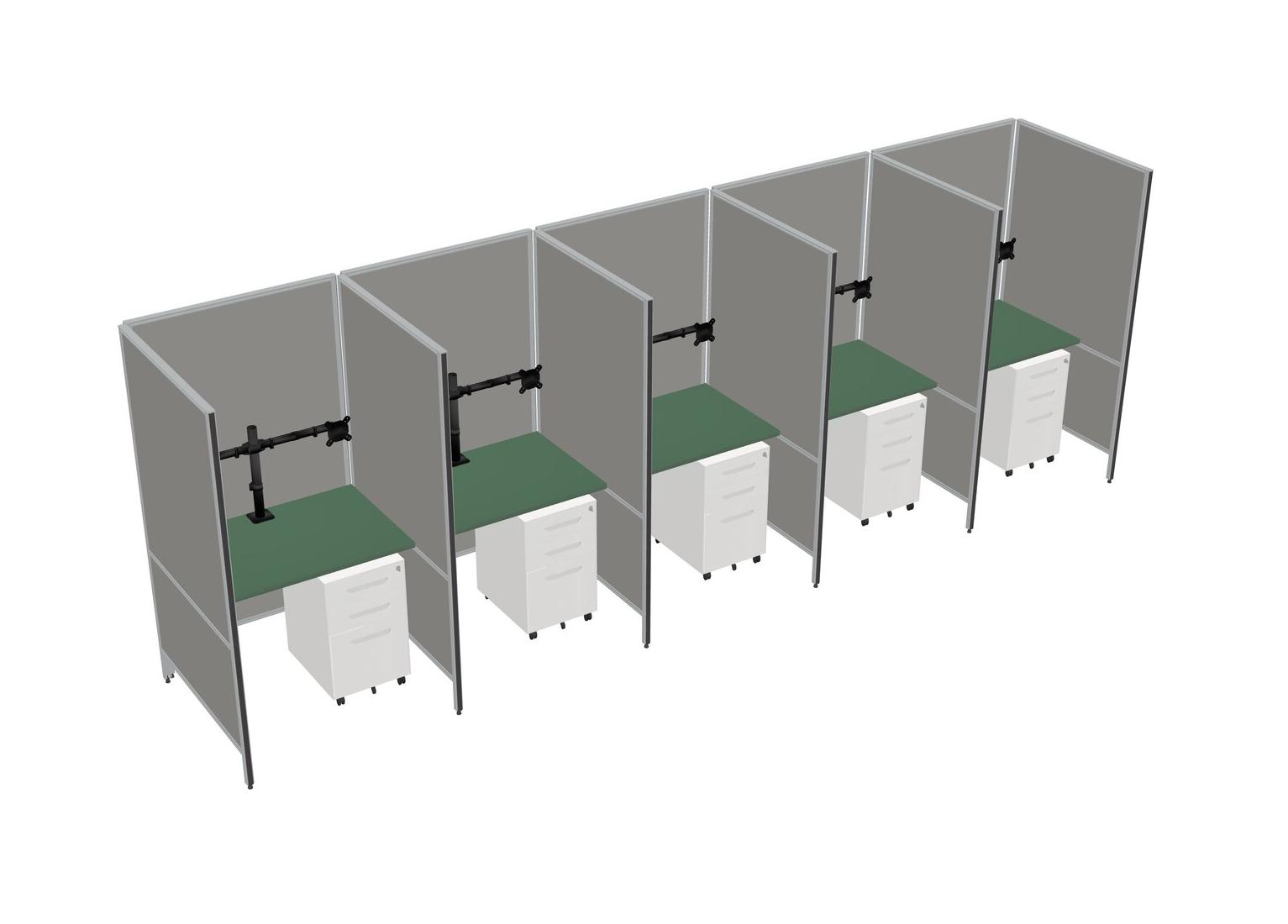 Green Flexible Panel System For 5 + Metal Mobile Drawers + Monitor Arm (double Arms)