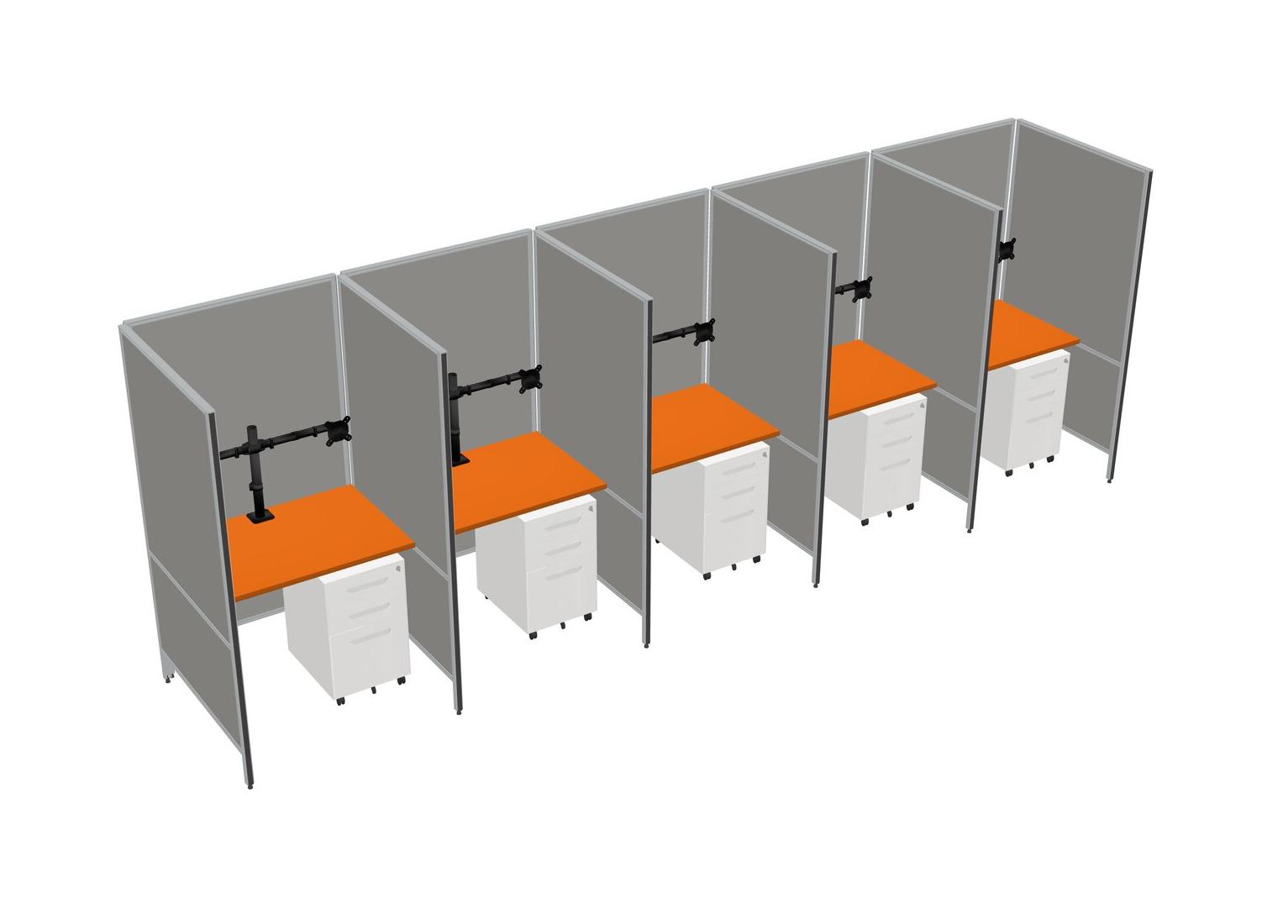 Orange Flexible Panel System For 5 + Metal Mobile Drawers + Monitor Arm (double Arms)
