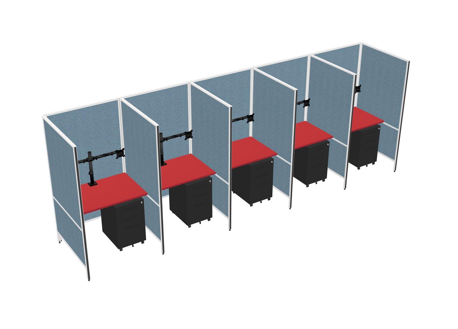 Prism Red Flexible Panel System For 5 + Metal Mobile Drawers + Monitor Arm (double Arms)