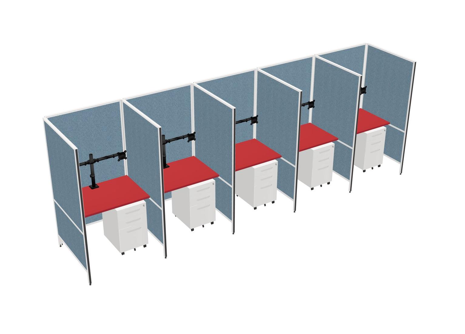 Prism Red Flexible Panel System For 5 + Metal Mobile Drawers + Monitor Arm (double Arms)