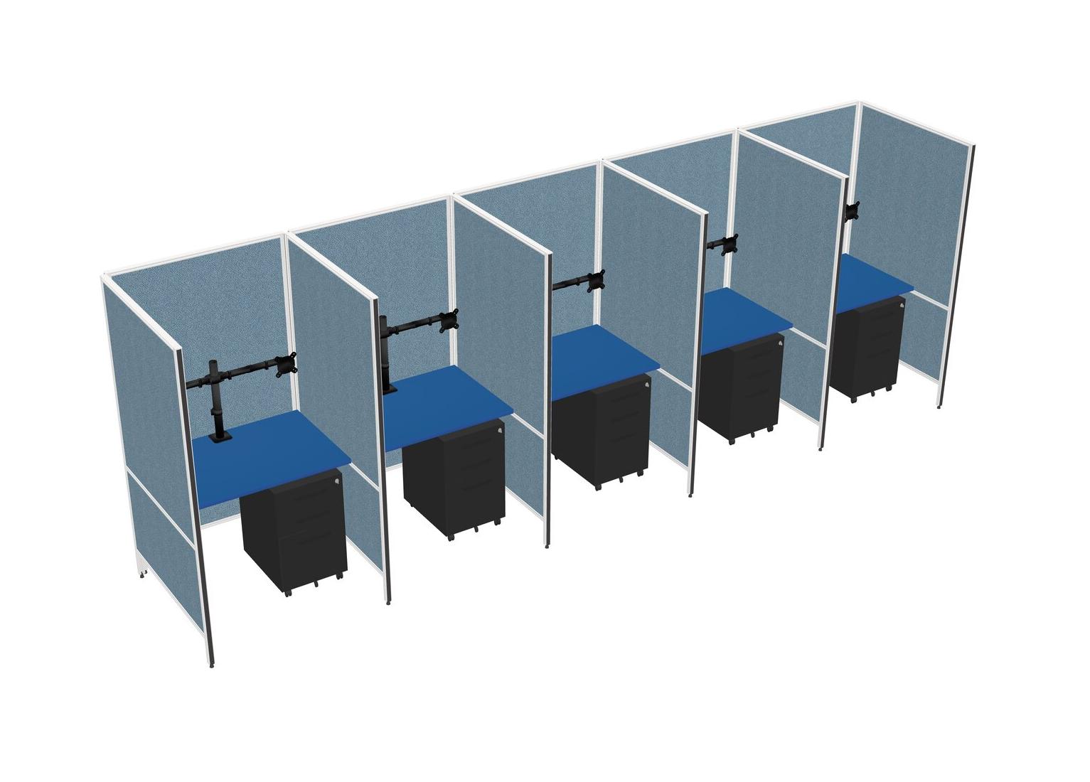 Prism Blue Flexible Panel System For 5 + Metal Mobile Drawers + Monitor Arm (double Arms)