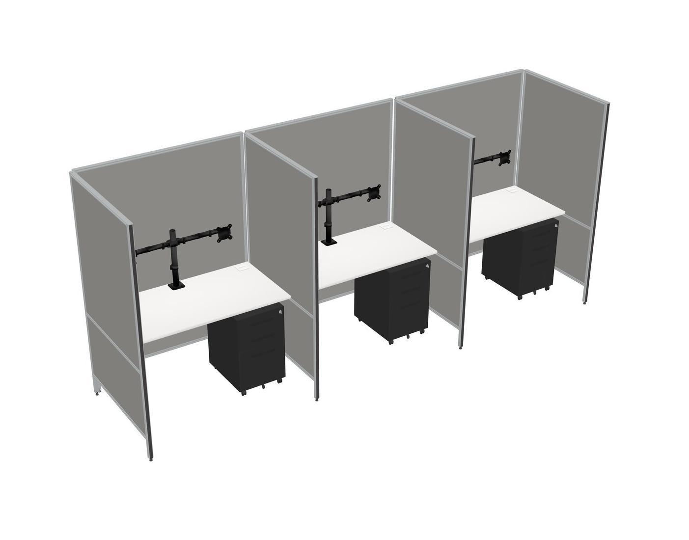 White Flexible Panel System For 3 + Metal Mobile Drawers + Monitor Arm (double Arms)