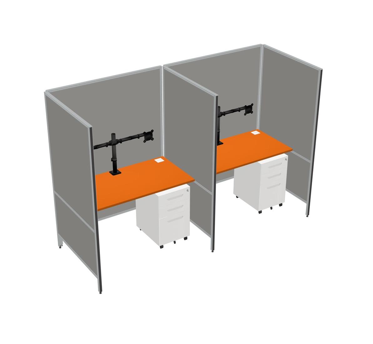 Orange Flexible Panel System For 2 + Metal Mobile Drawers + Monitor Arm (double Arms)